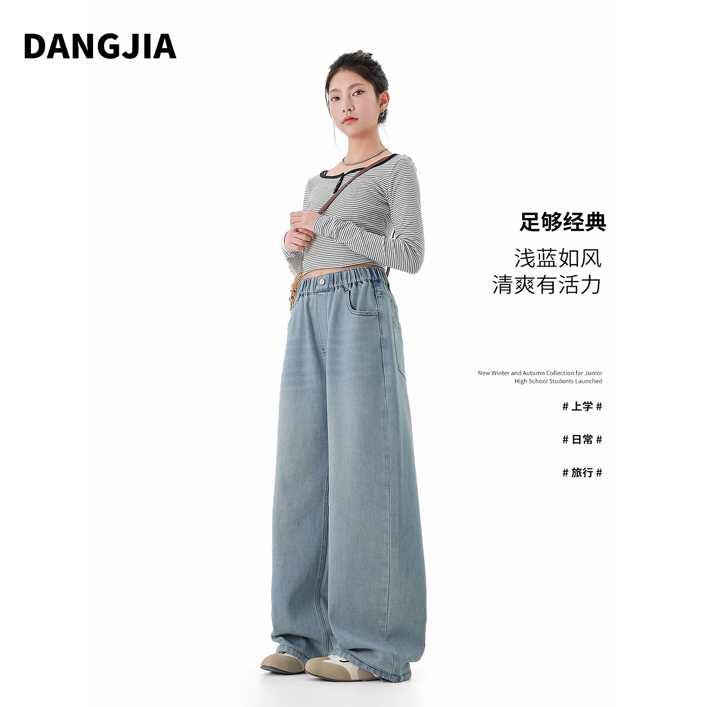 女大童牛仔裤2026春款弹力阔腿裤初高中生直筒裤青少年女孩装裤子