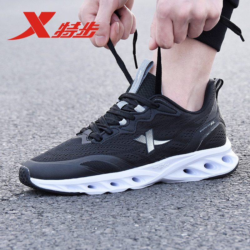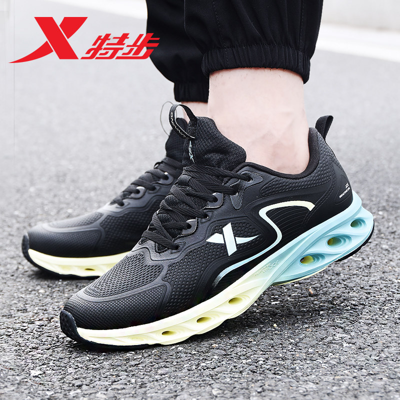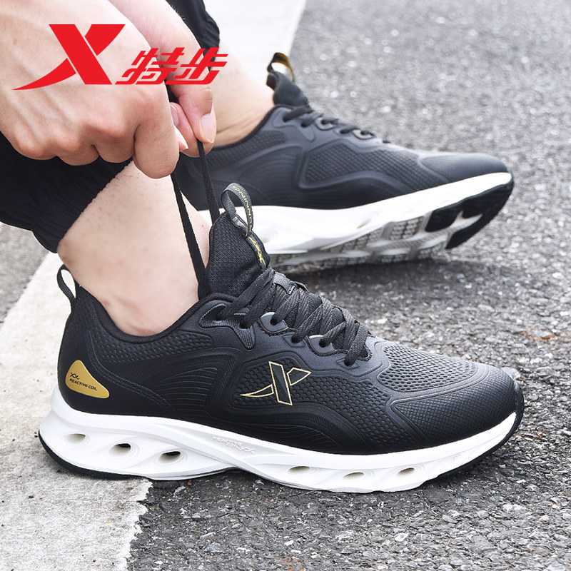 特步男鞋皮面减震旋跑鞋春秋季男士超轻运动鞋子男款网面跑步鞋