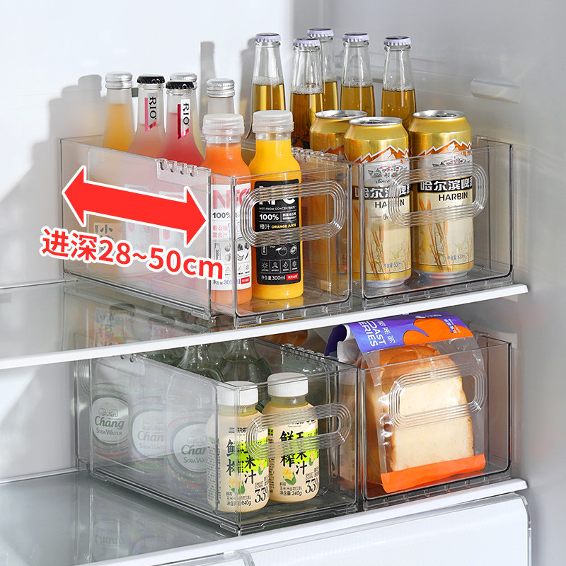 日式透明亚克力长条盒加高瘦高型大收纳盒化妆盒窄柜超高筐 冰箱