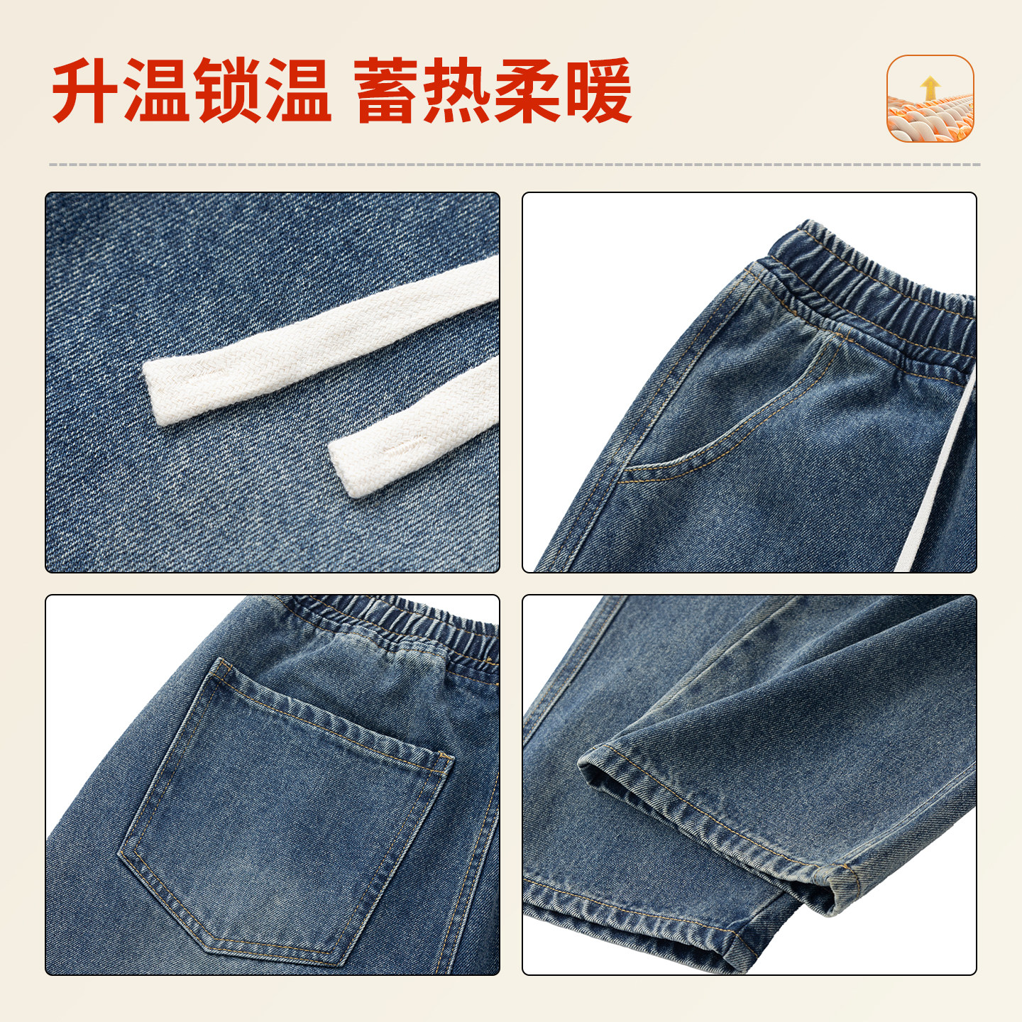 311线报网描述:青少年美式复古加绒直筒休闲牛仔长裤秋冬季