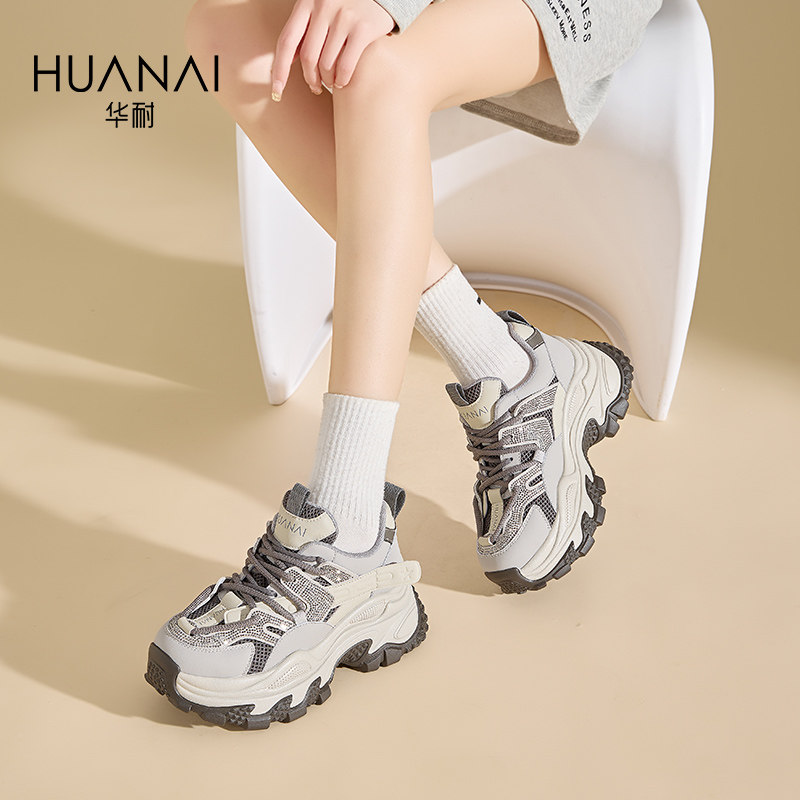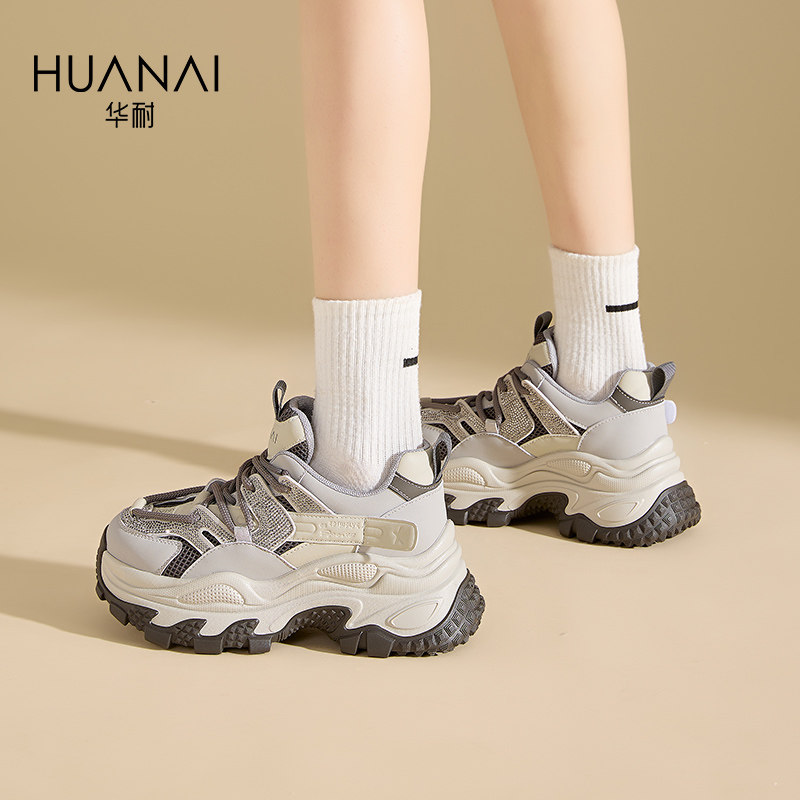配阔腿裤的老爹鞋增高厚底女2025新款女鞋春季运动休闲鞋透气网面