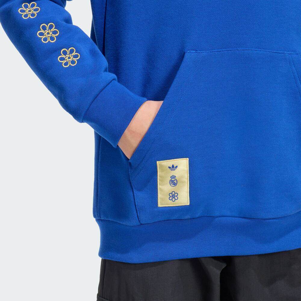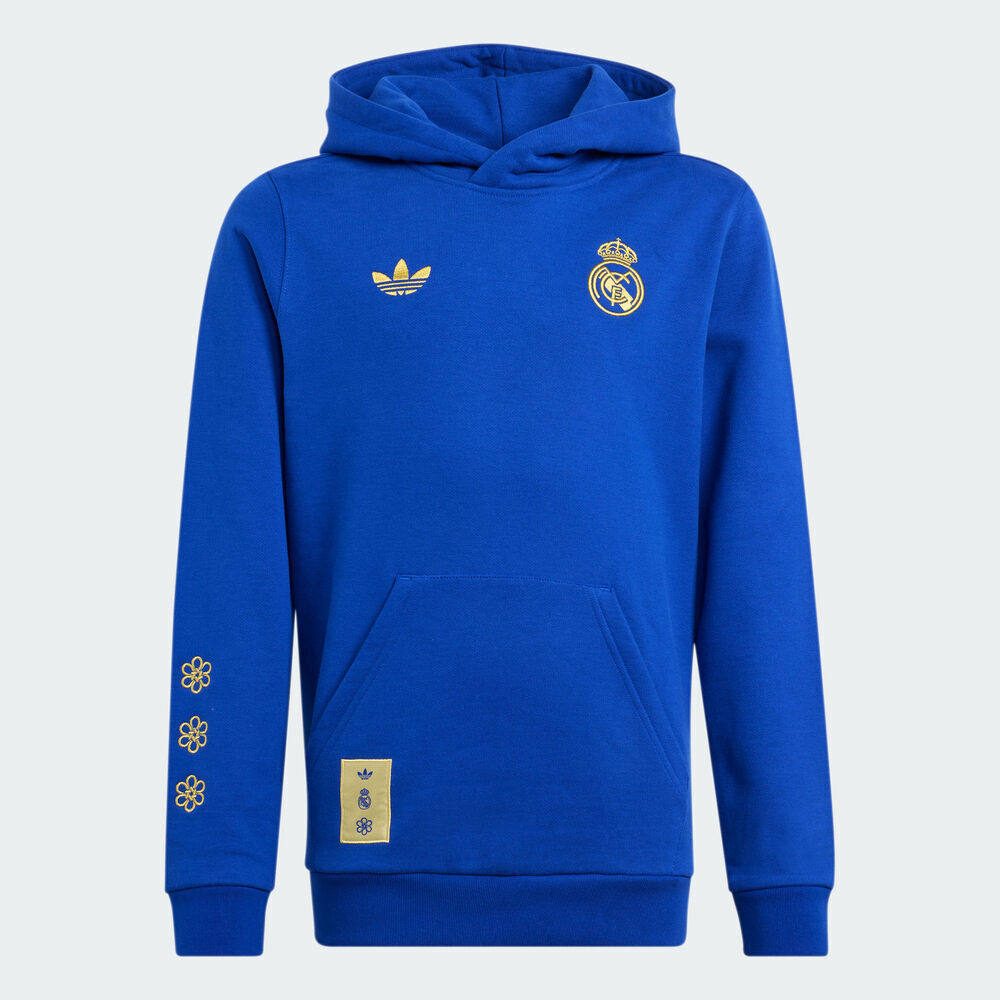 滔搏adidas阿迪达斯男大童皇马足球休闲针织连帽套头衫卫衣JZ2240