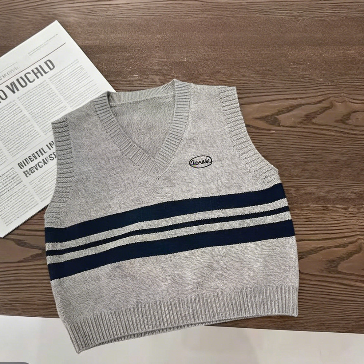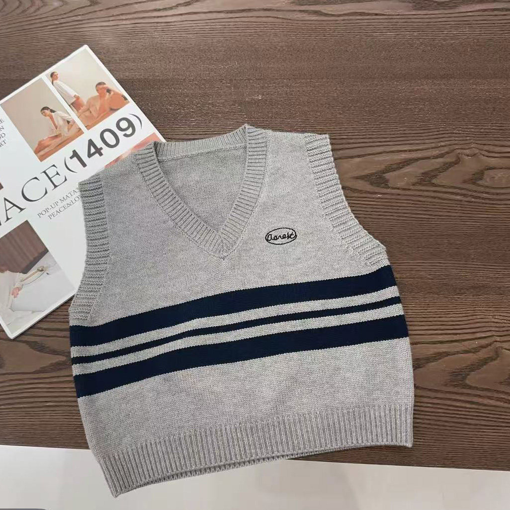 2026春款马甲V领复古毛衣韩版男女童针织衫童装春秋外穿上衣宽松