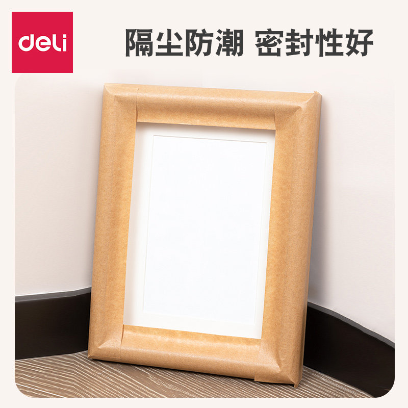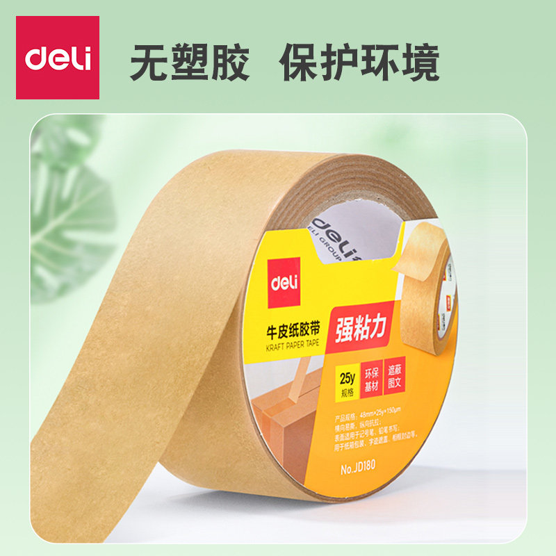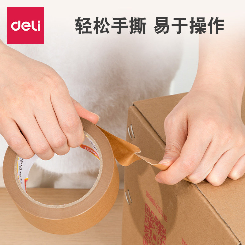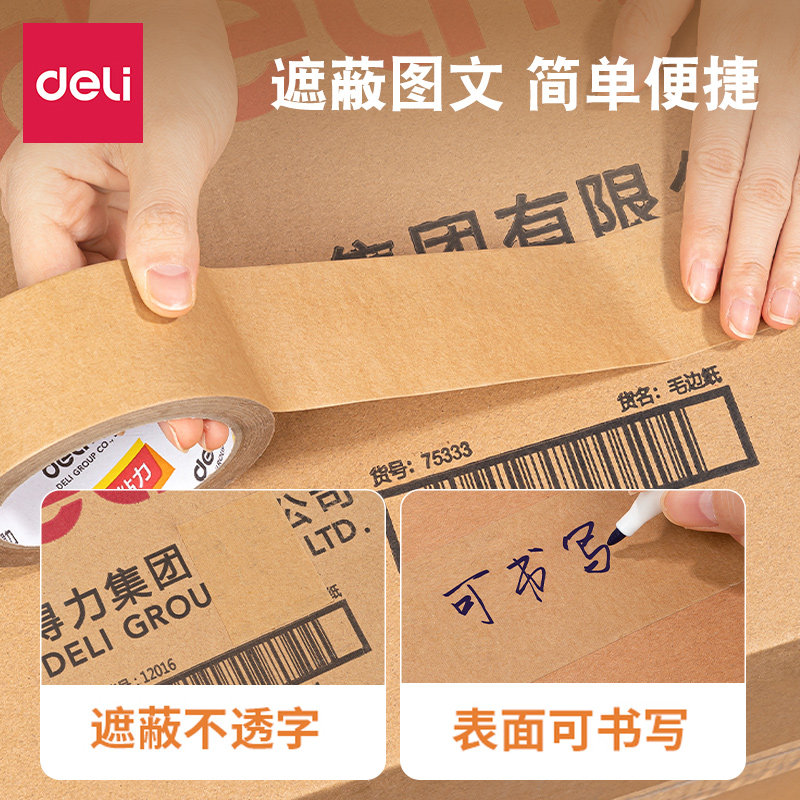 得力牛皮纸胶带高粘度可撕免水洗美术生裱画可写强力快递封箱胶带