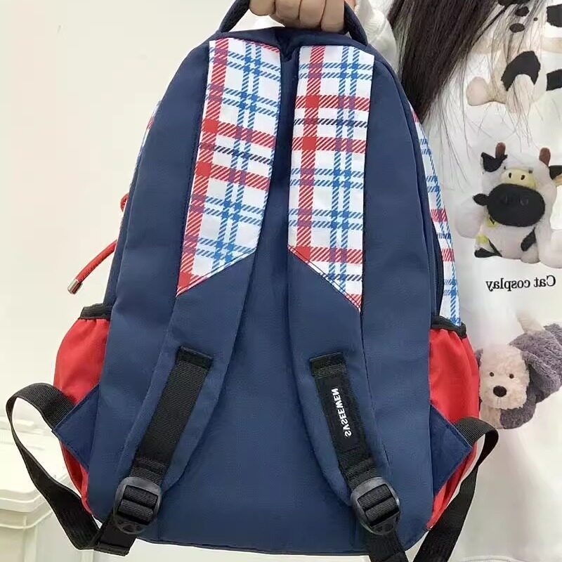 双肩背包卡通2025新款小猫轻便格子结实耐用书包初中女生大容量小众可爱初高中生学生双肩包防泼水高颜值校园