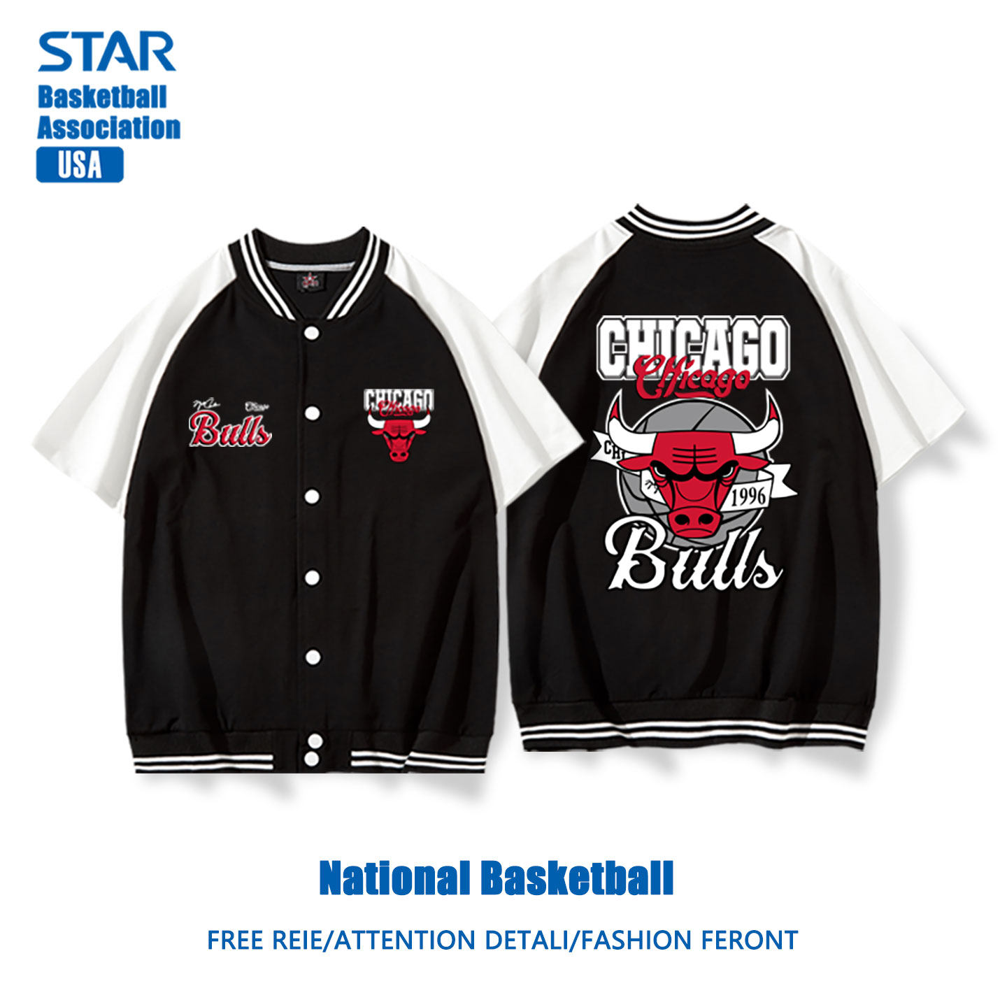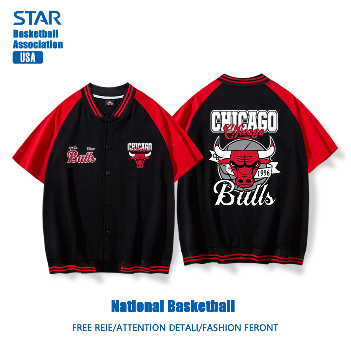 311线报网描述:美式公牛队出场棒球服短袖外套