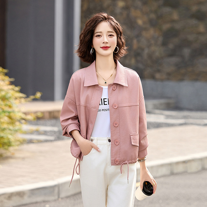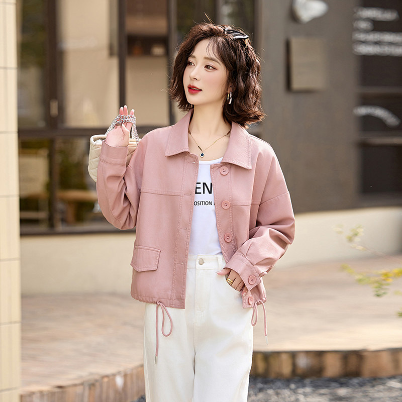 粉色皮衣女款2026新款春秋今年流行爆款酷飒夹小个子减龄休闲外套