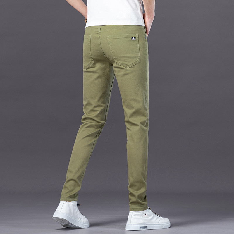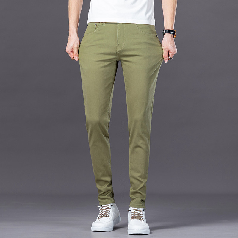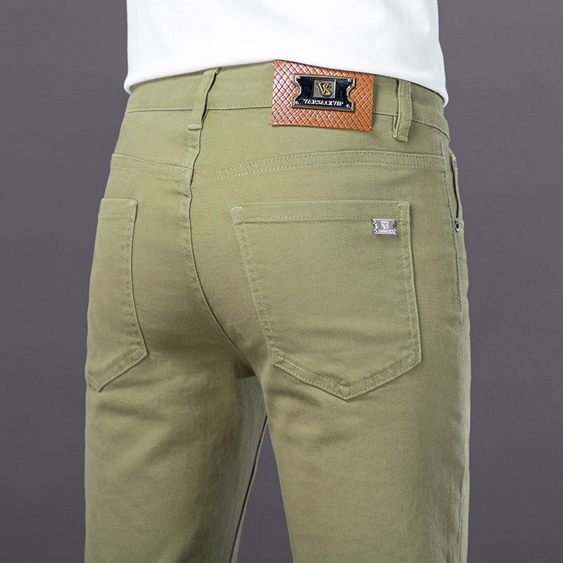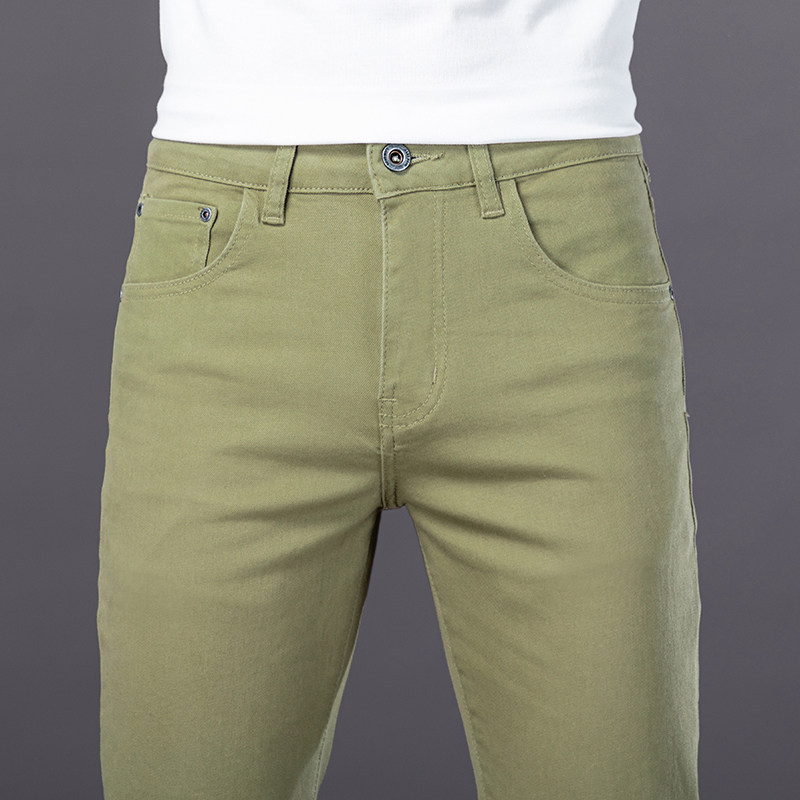 香港高端牛仔裤男夏季2026新款浅绿色修身小脚男士弹力休闲裤子男