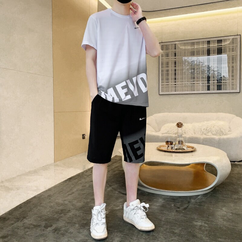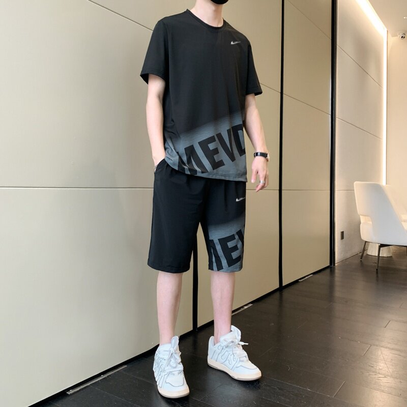 耐克顿运动套装男夏季冰丝透气短袖短裤青少年潮流速干宽松俩件套