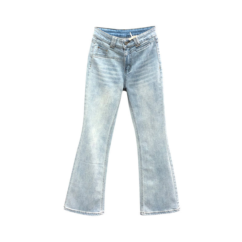 浅色高腰休闲微喇牛仔裤女2026春夏时尚新款百搭直筒宽松喇叭裤子