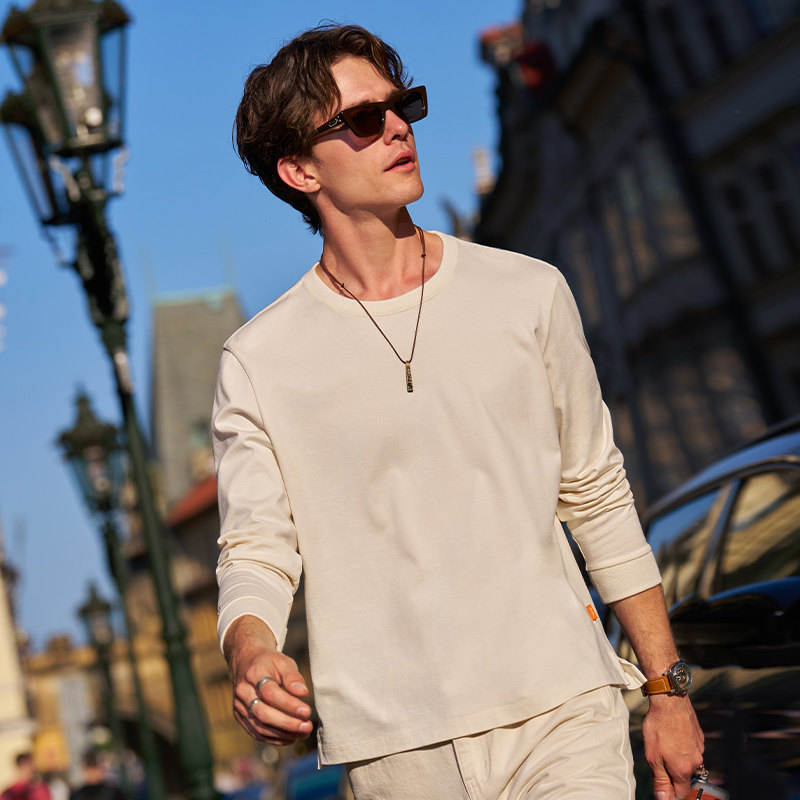 MrBu布先生标准版长袖t恤衫圆领纯色春秋男款新款刺绣上衣KT16571