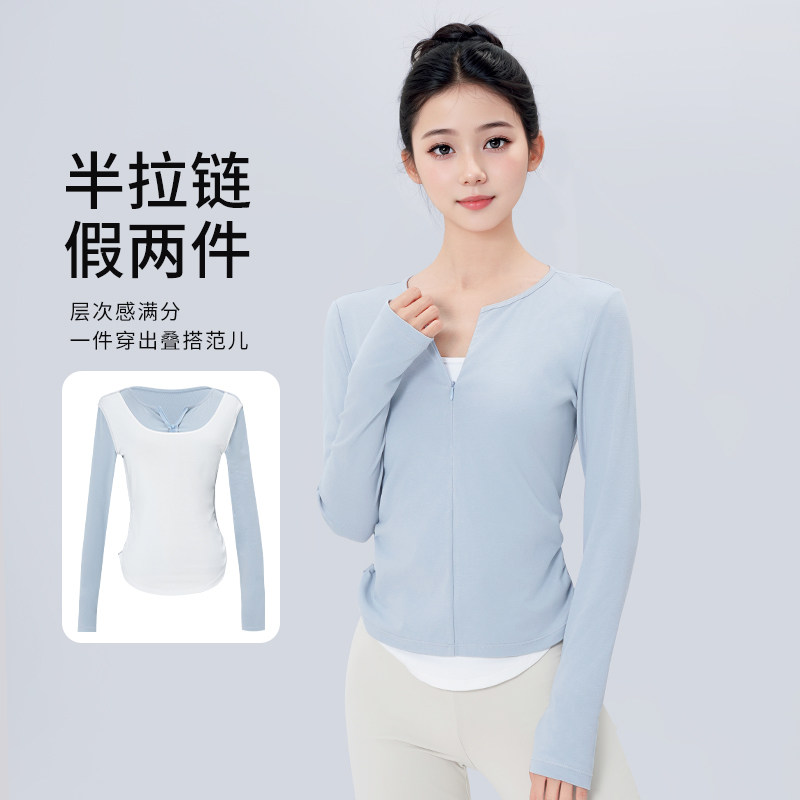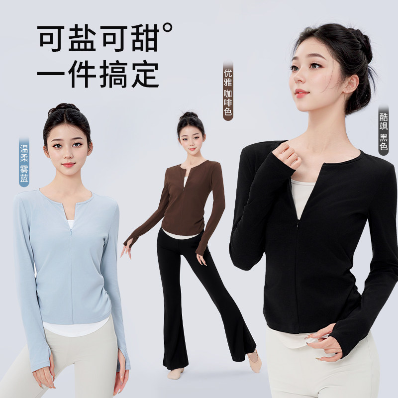 现代中国舞成人舞蹈服上衣芭蕾舞显瘦假两件春秋长袖跳舞练功服女