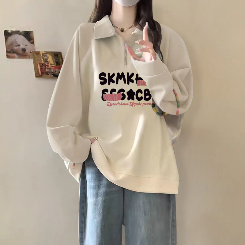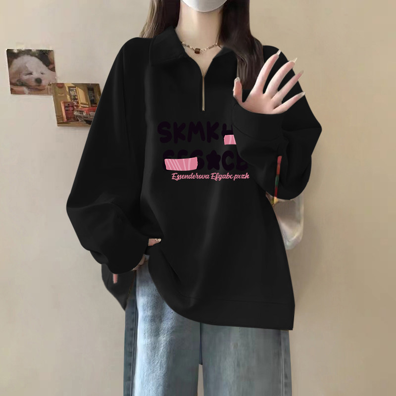美式立领半拉链外套加绒加厚女款秋冬宽松oversize卫衣2026新款