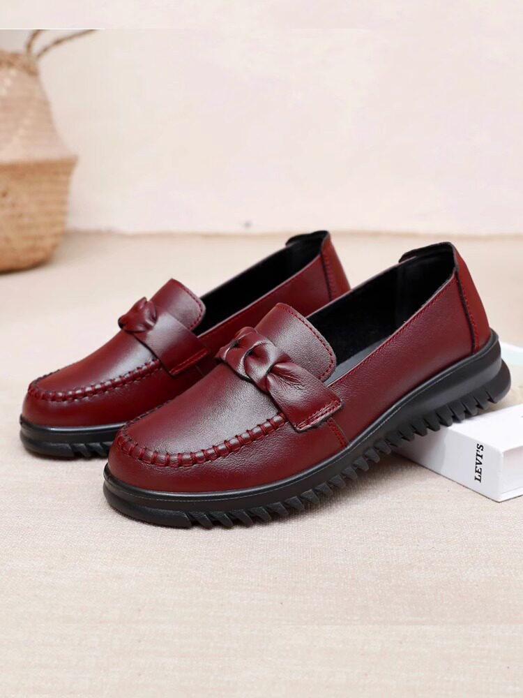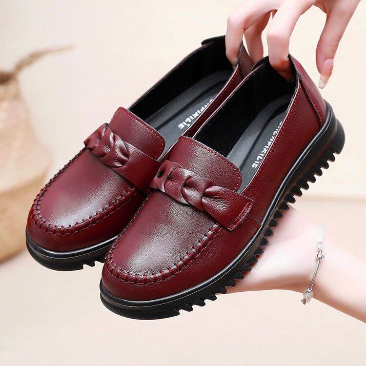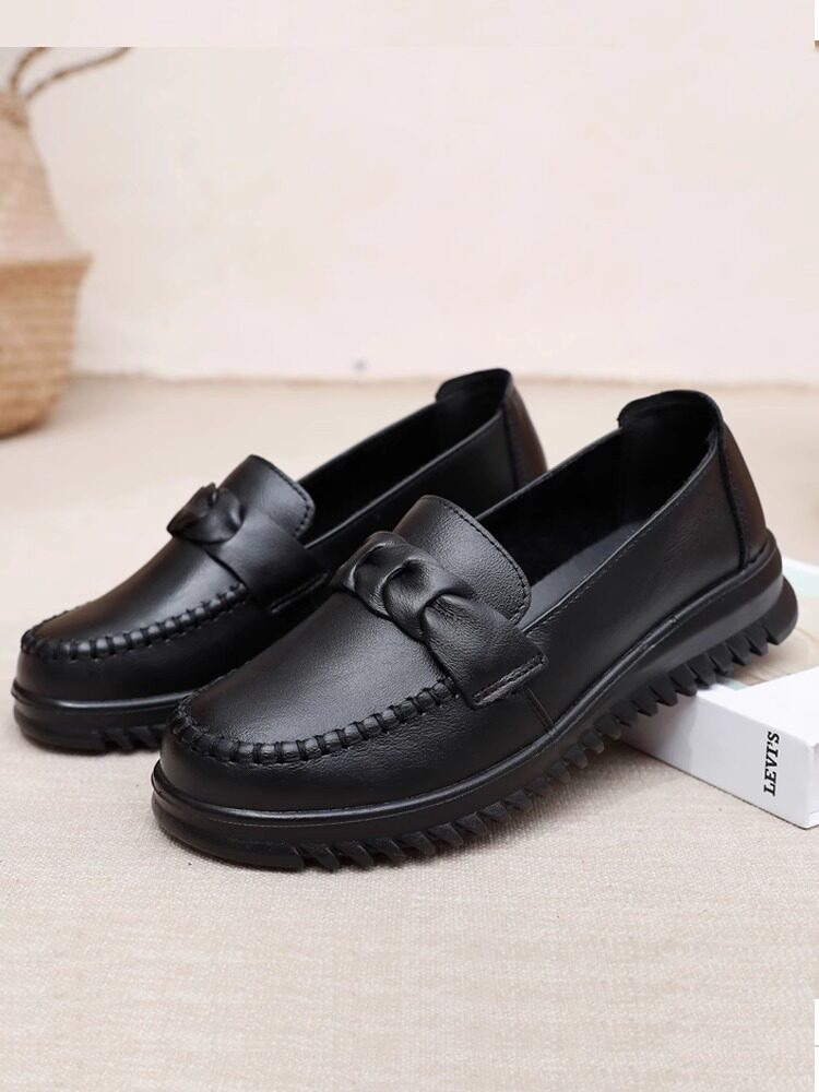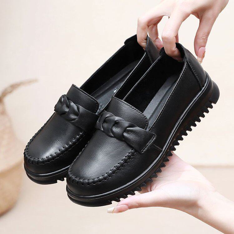 品牌真皮妈妈鞋女鞋2026春季新款中老年平底舒适老人软底防滑单鞋