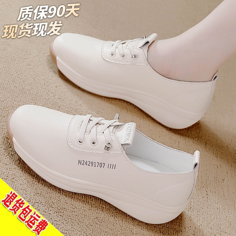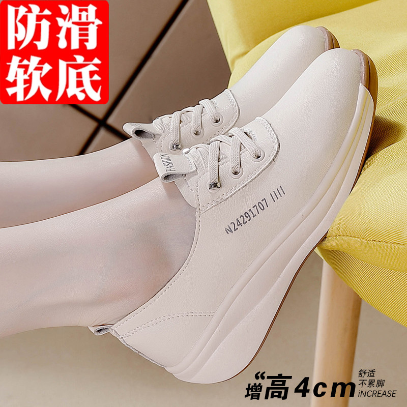 香港真皮休闲鞋女鞋2026春季新款百搭平底单鞋时尚软底防滑妈妈鞋