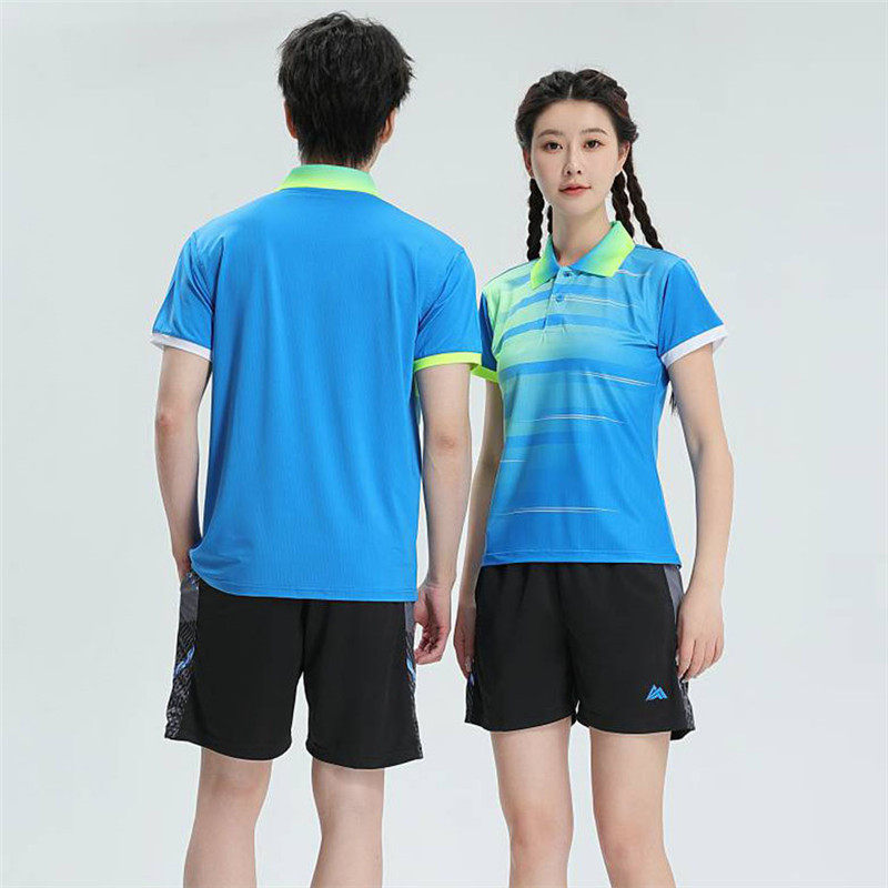 速干羽毛球服套装短袖T恤夏运动快干大赛排球服蓝白健身乒乓球衣