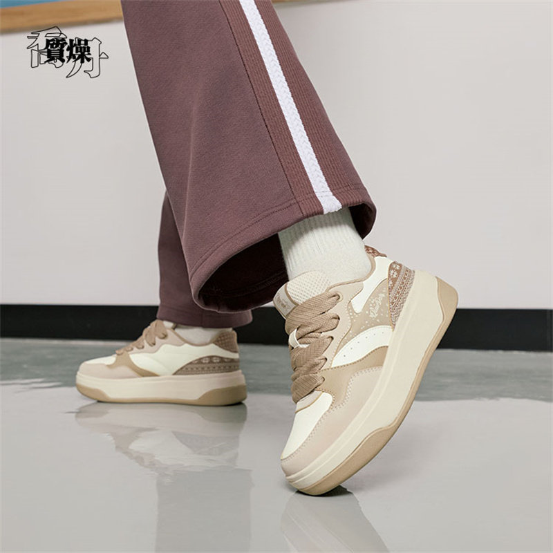 【饼干鞋】乔丹质燥女鞋板鞋潮流革面厚底运动鞋低帮休闲商场同款
