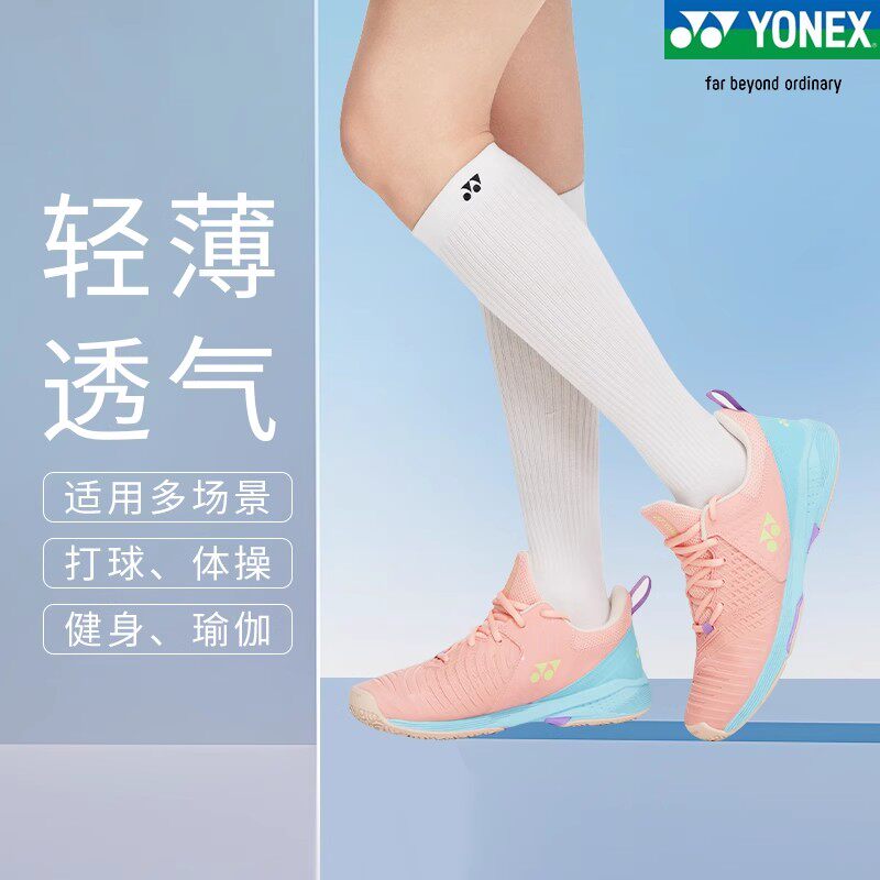 YONEX尤尼克斯羽毛球袜女款运动袜舒适吸汗245264BCR长筒球袜