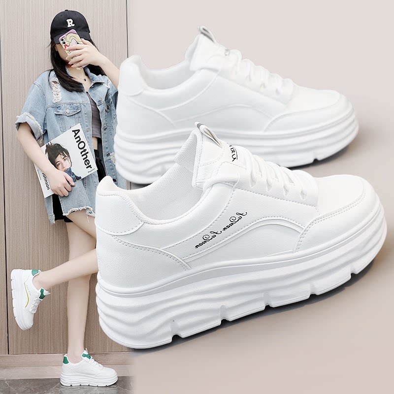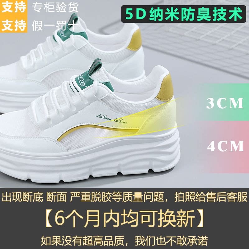 PLOVER百搭内增高小白鞋女厚底2025新款夏季网面网红小个子板鞋