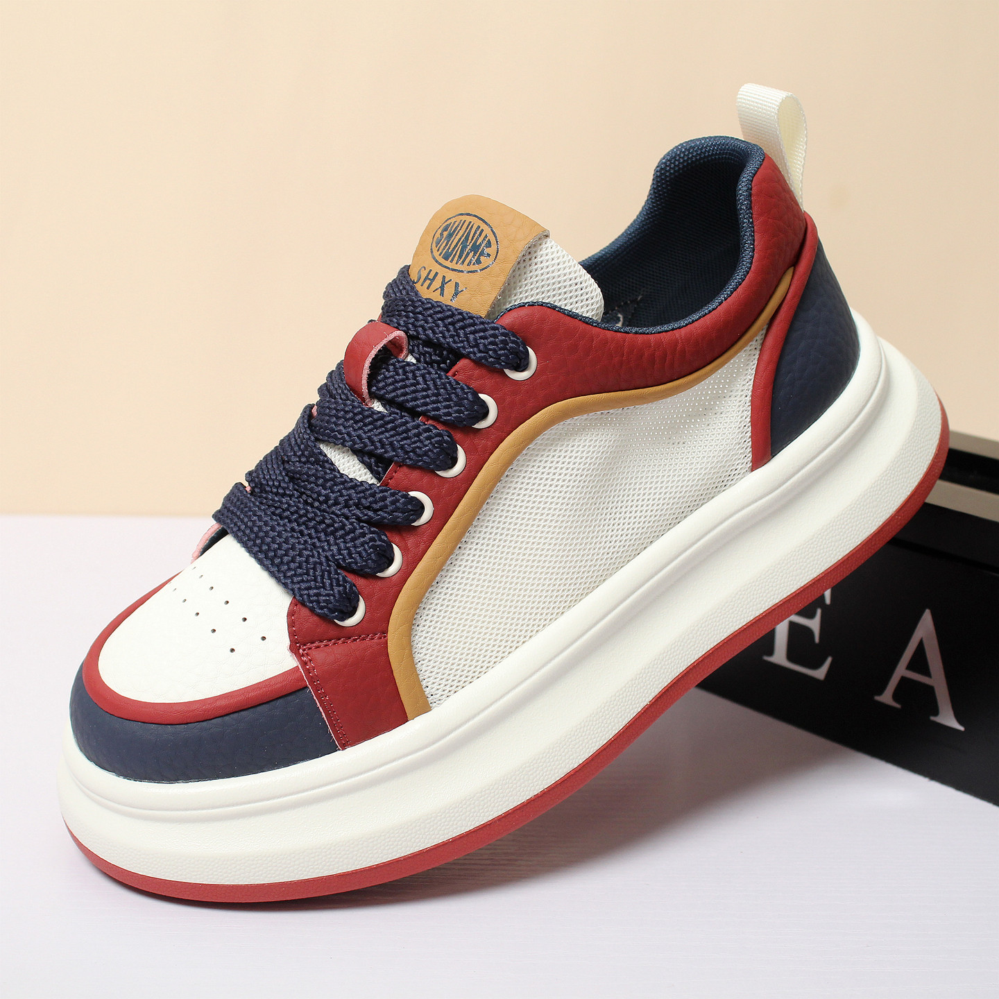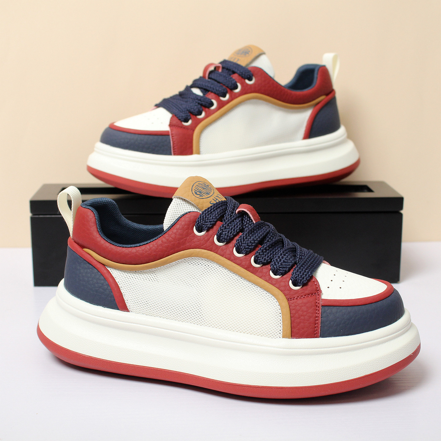 厚底增高休闲板鞋男2026夏新款网面透气小白鞋时尚百搭简约运动鞋