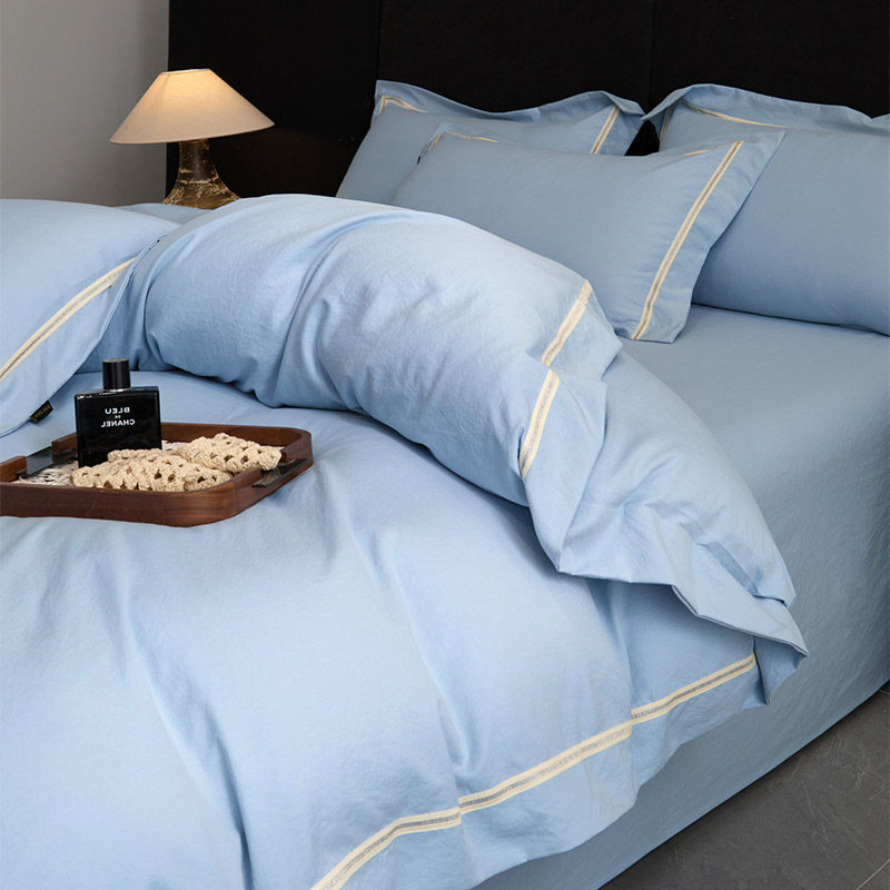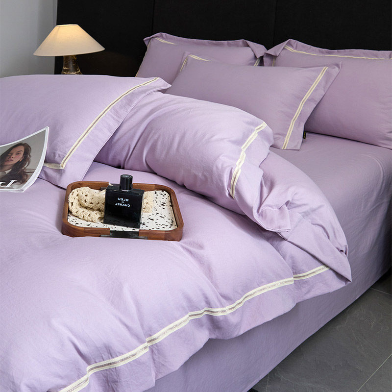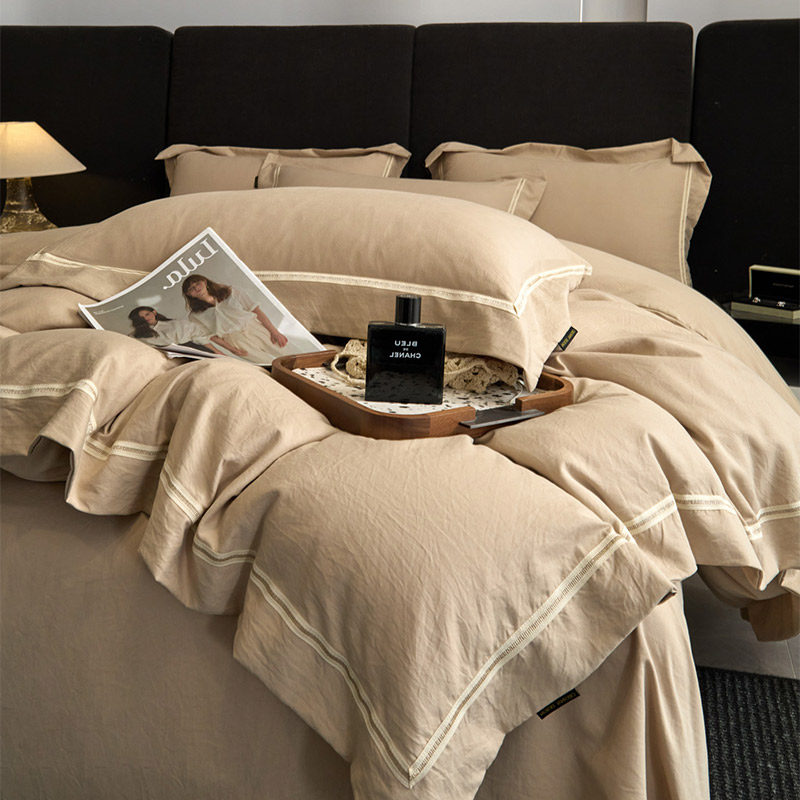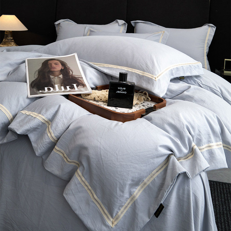 2026新款镂空简约全棉纯棉四件套欧式纯色床单被套日式床品套件