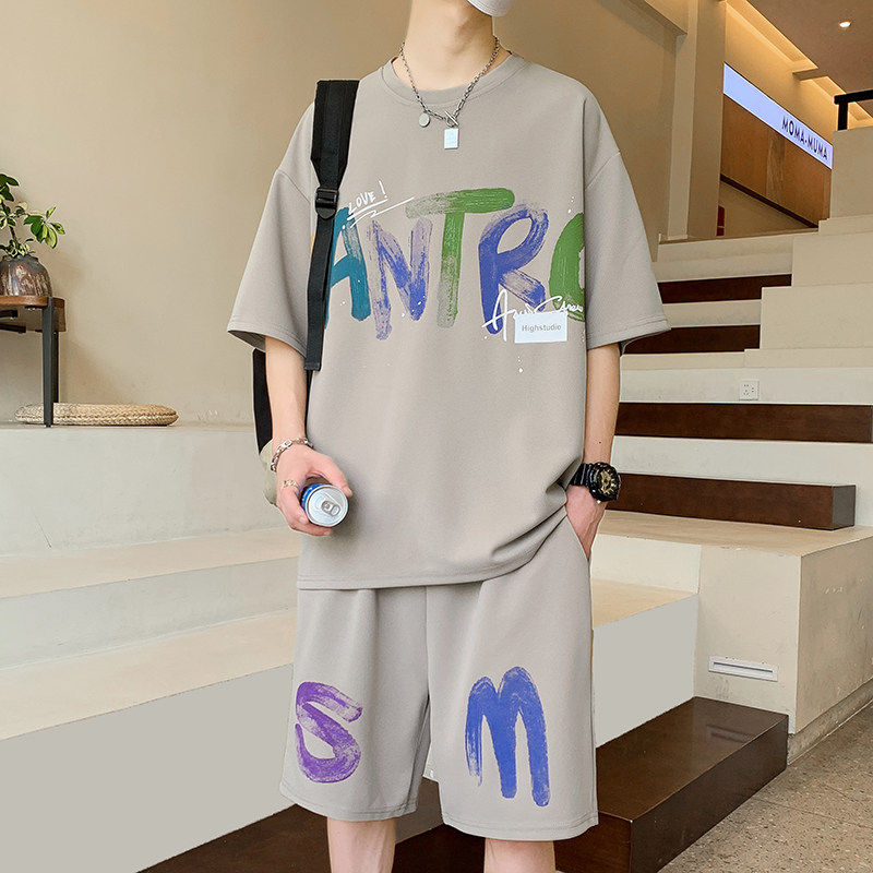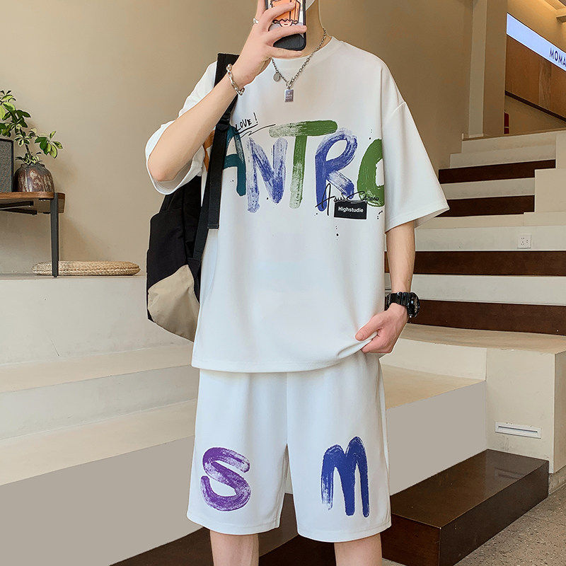 夏季短袖t恤男生初中生2026新款冰丝半袖青少年大童休闲运动套装