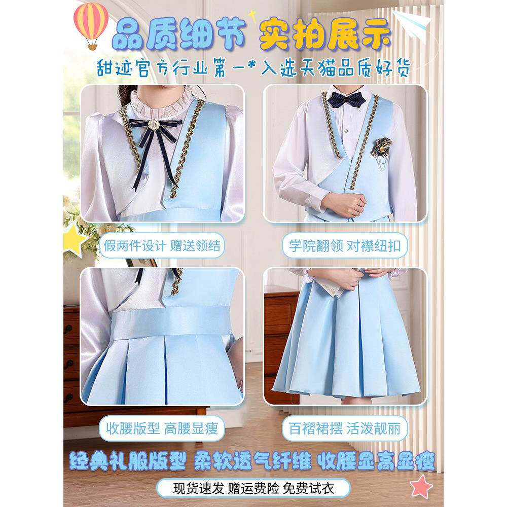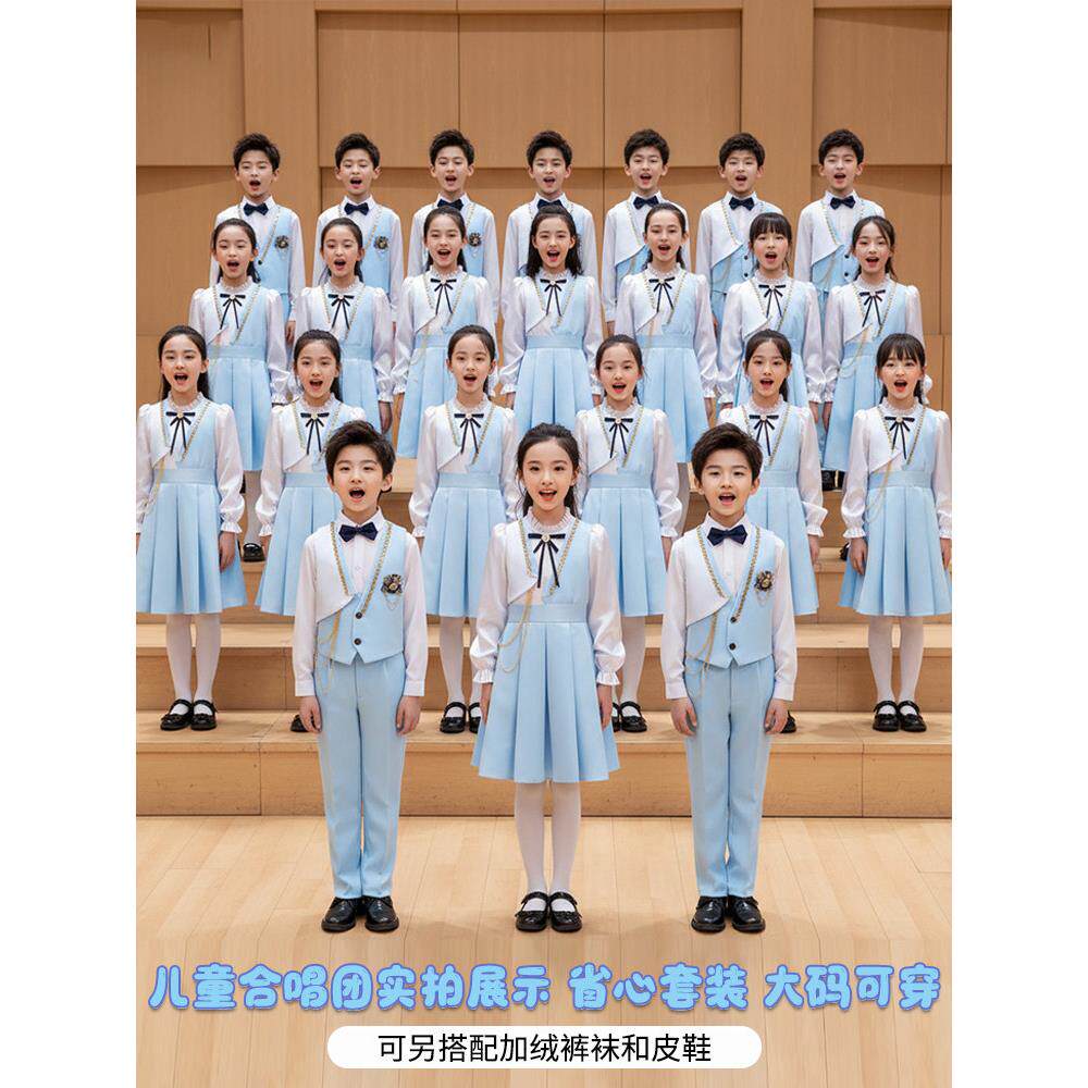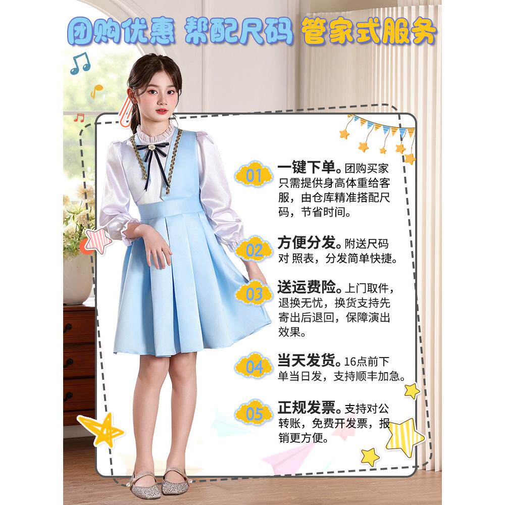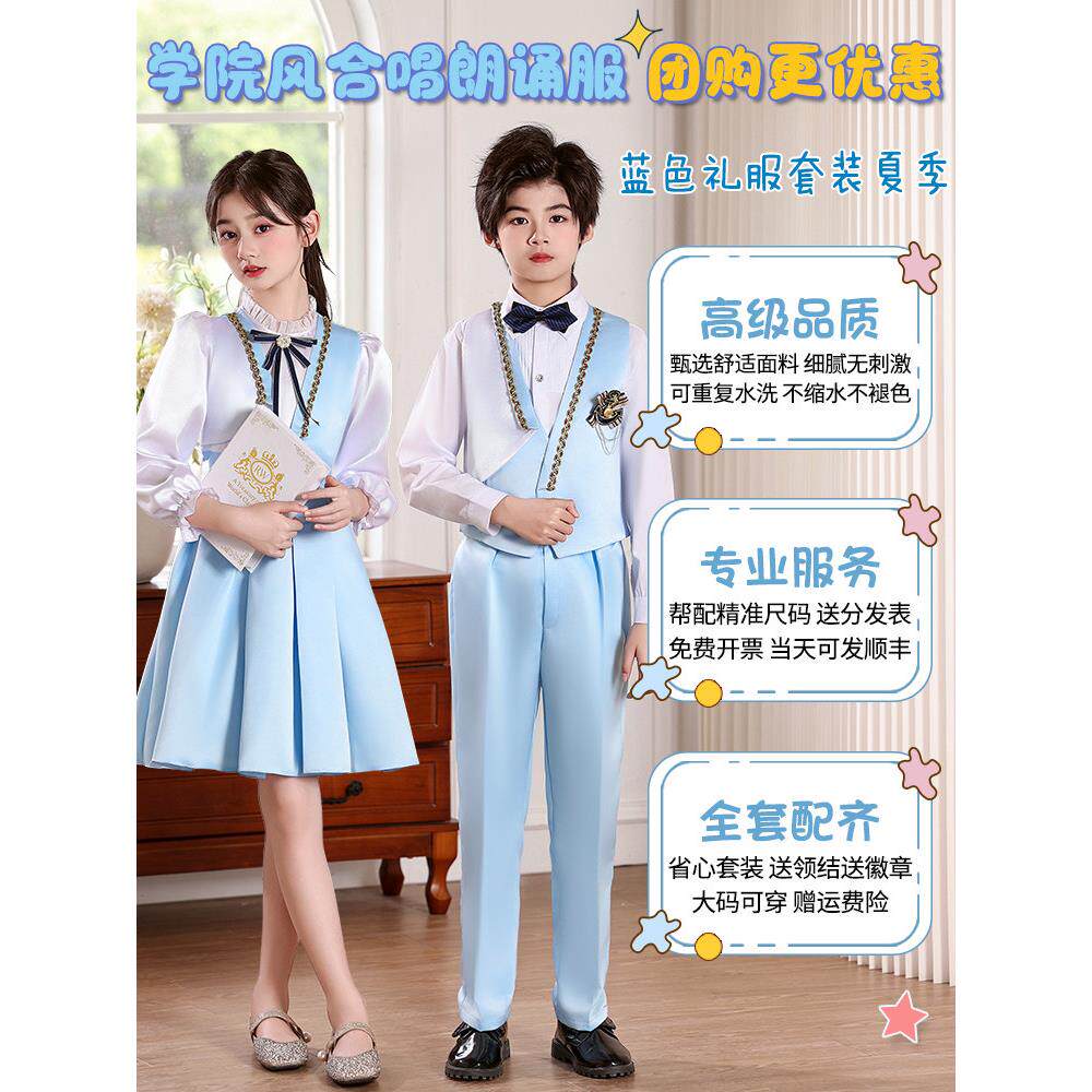 儿童合唱朗诵演出服初中小学生女童蓝色爱国诗歌演讲比赛礼服装