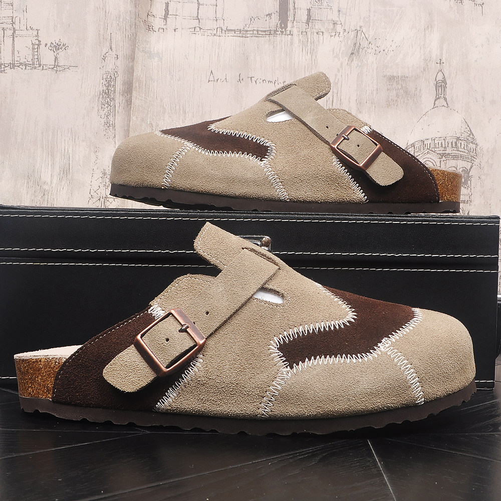 男款勃肯鞋2026真皮拼色一脚蹬穆勒鞋复古包头拖休闲通勤拖鞋