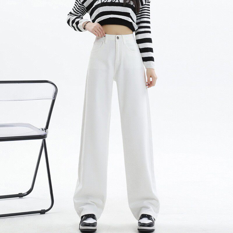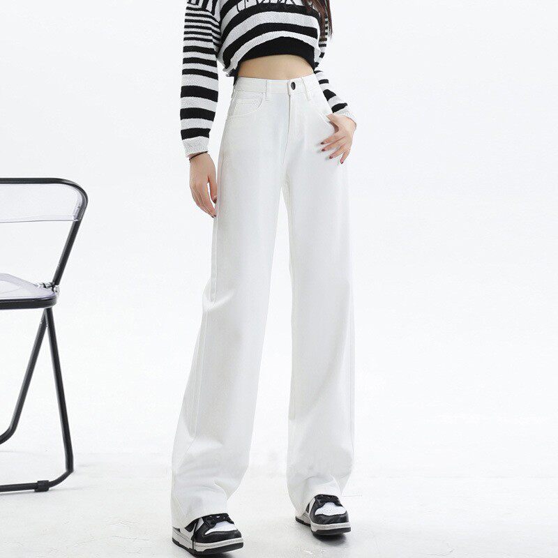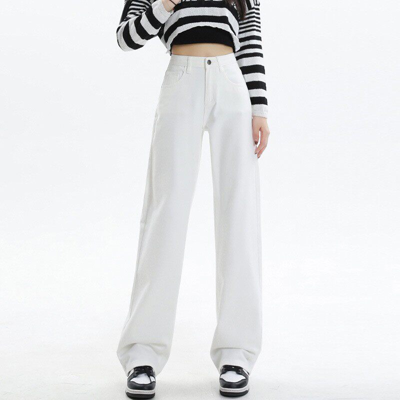 白色高腰高级微喇牛仔裤女款2026春季新款修身显瘦潮流百搭长裤子