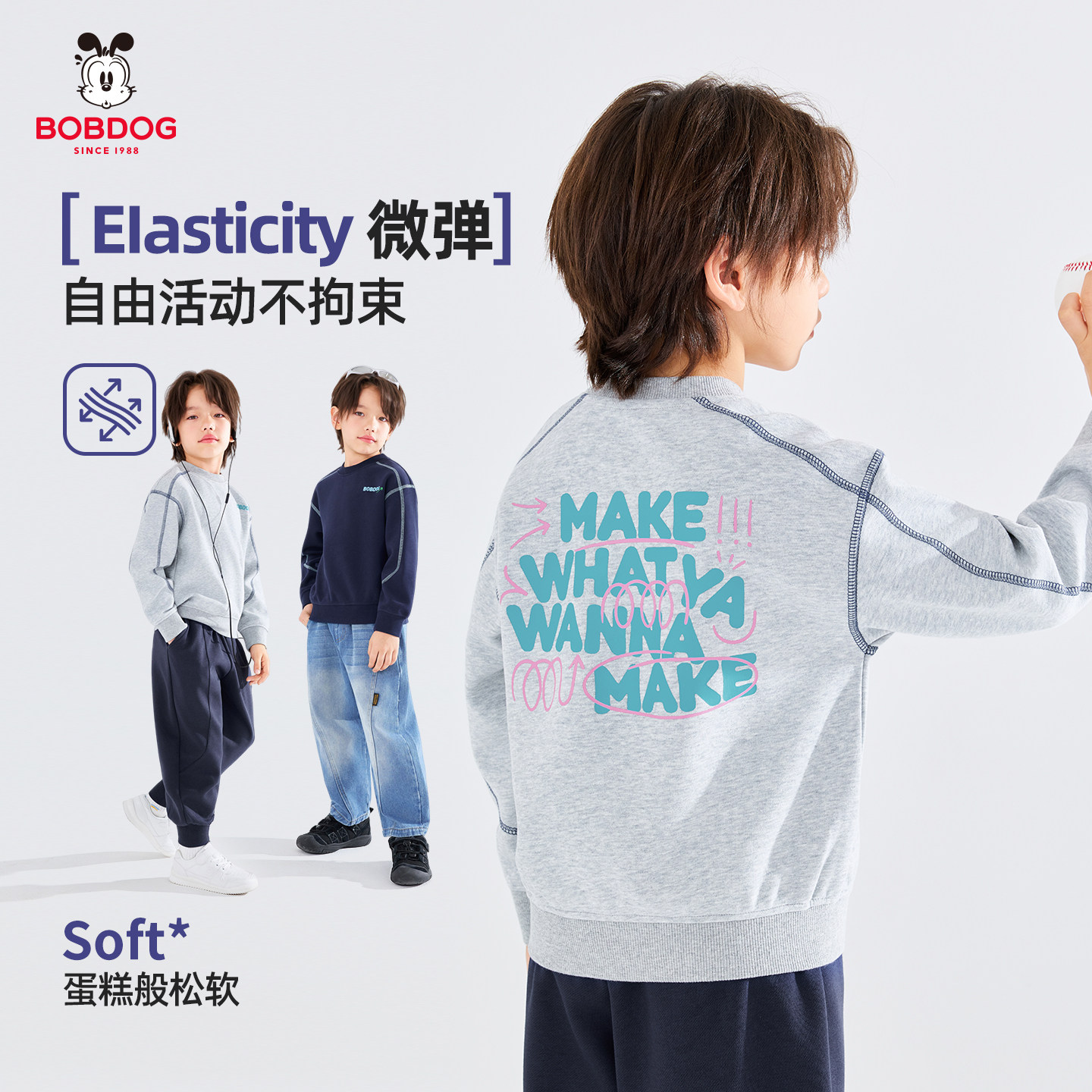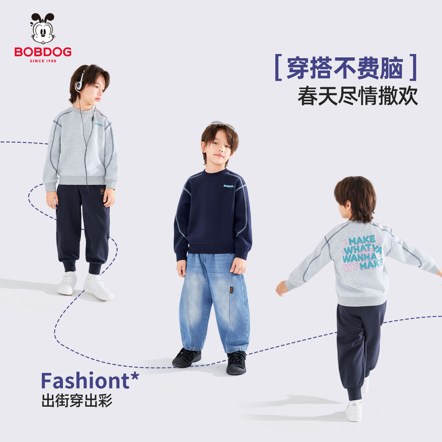巴布豆童装男童圆领卫衣2026春秋新款中大童儿童套头运动上衣春装