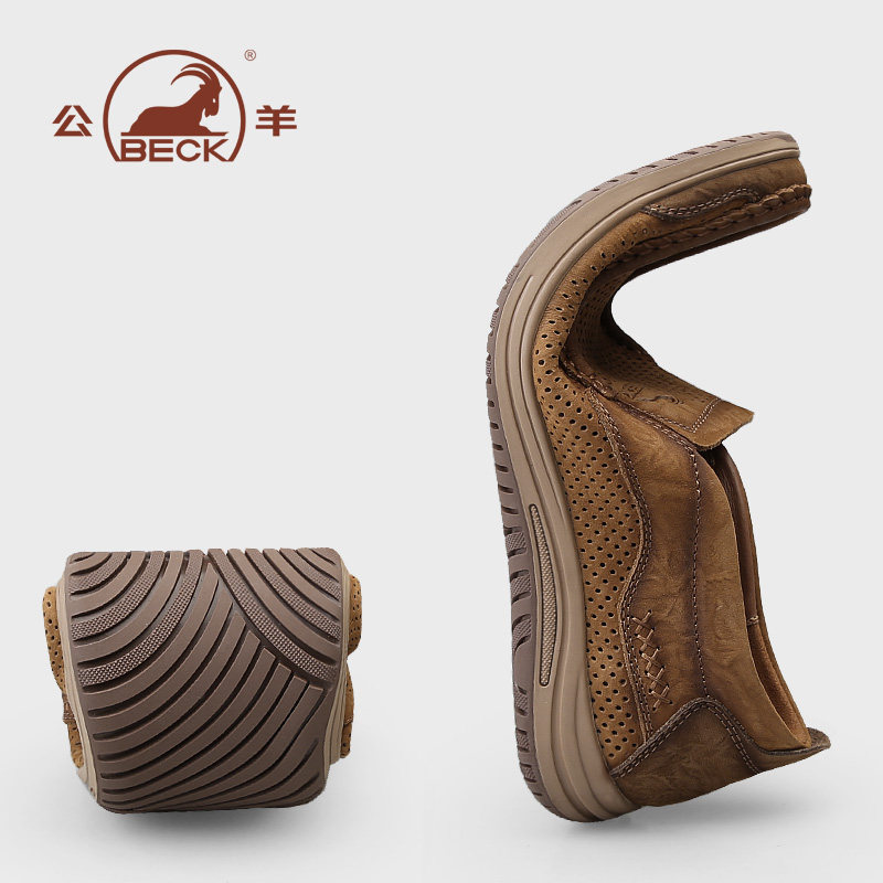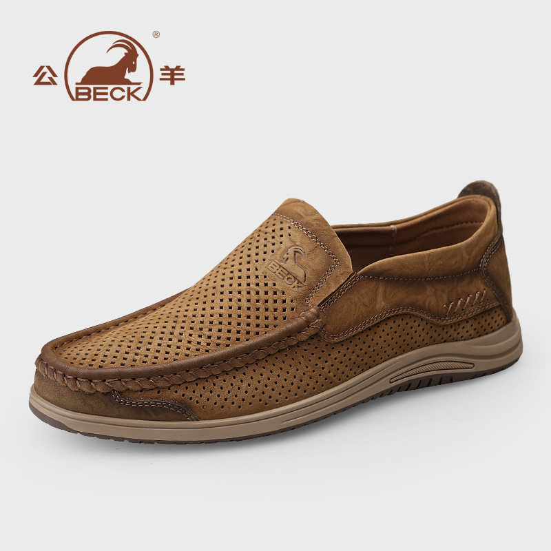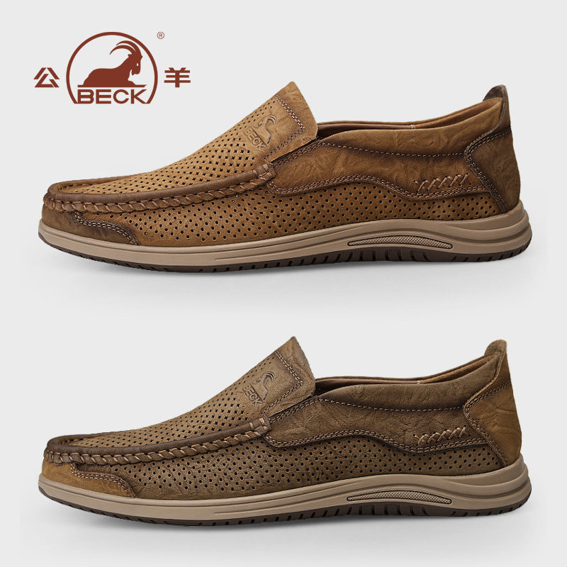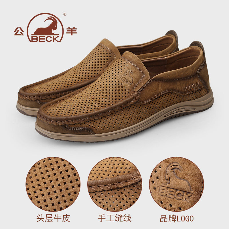 公羊休闲皮鞋男款2026新款夏季透气真皮软底爸爸鞋夏天镂空皮凉鞋