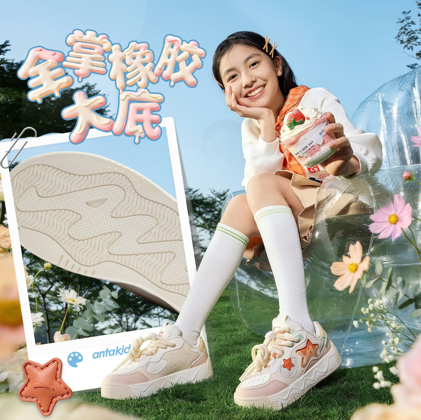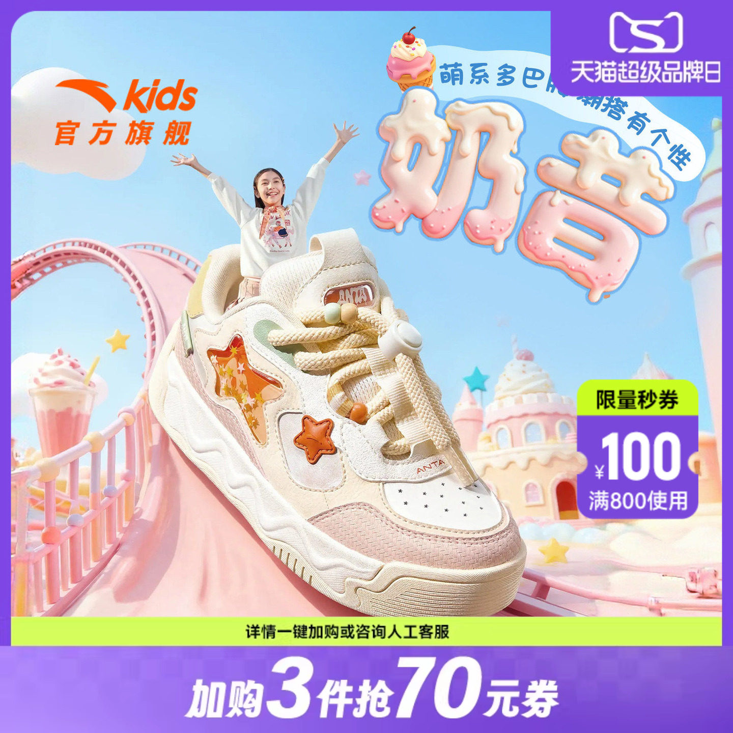 奶昔2新年款安踏儿童女大童板鞋2026年春季新款女孩时尚潮流学生