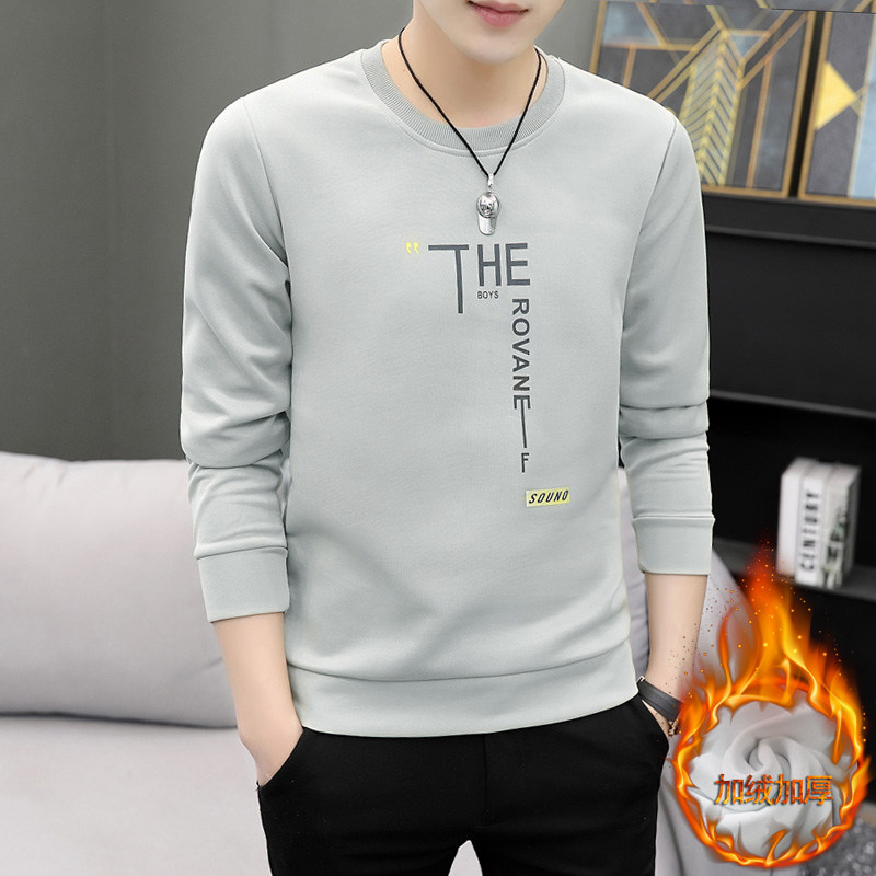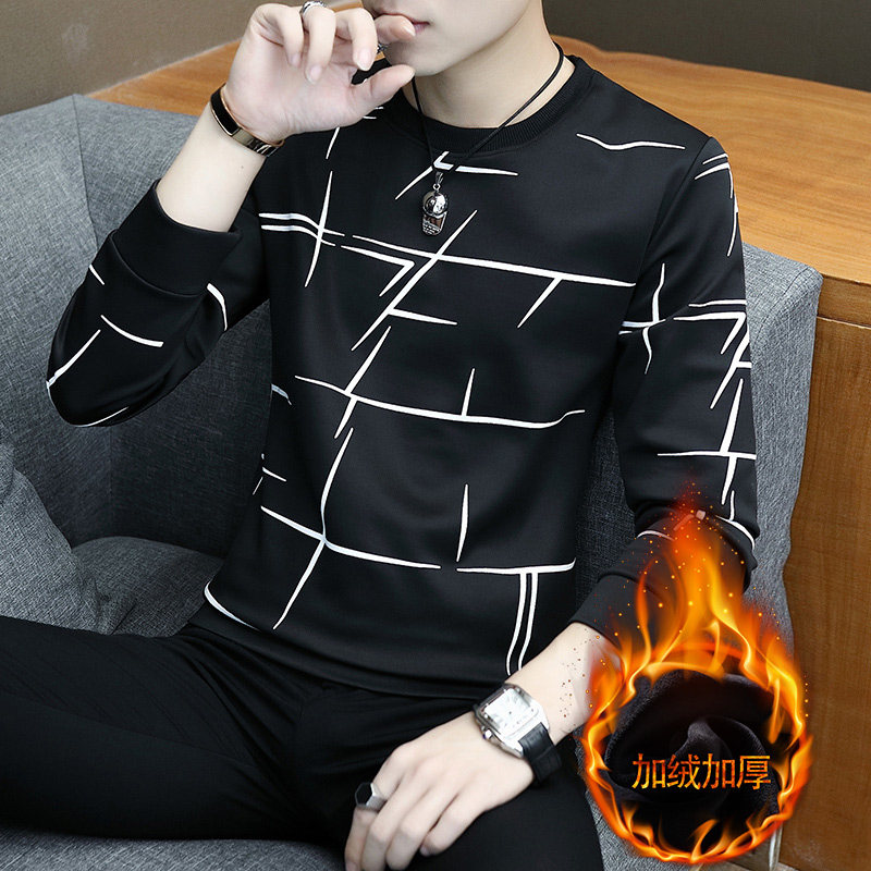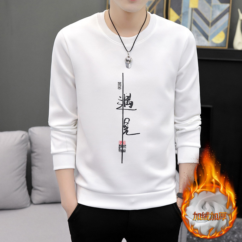 新秋冬加绒长袖T恤男士套头印花衣薄款修身青少年休闲帅气卫衣潮