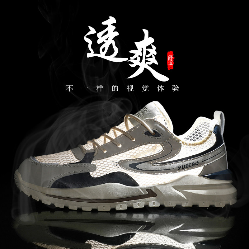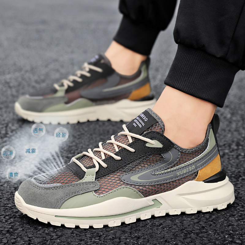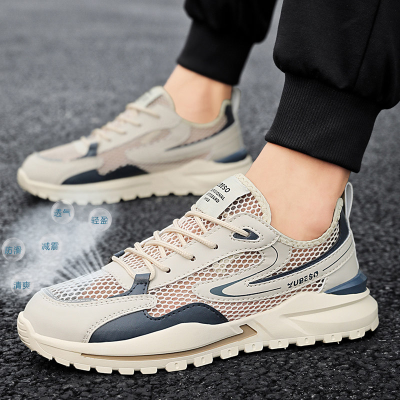 网面男鞋夏季网眼镂空透气运动跑步鞋男士轻便薄款防滑莆田老爹鞋