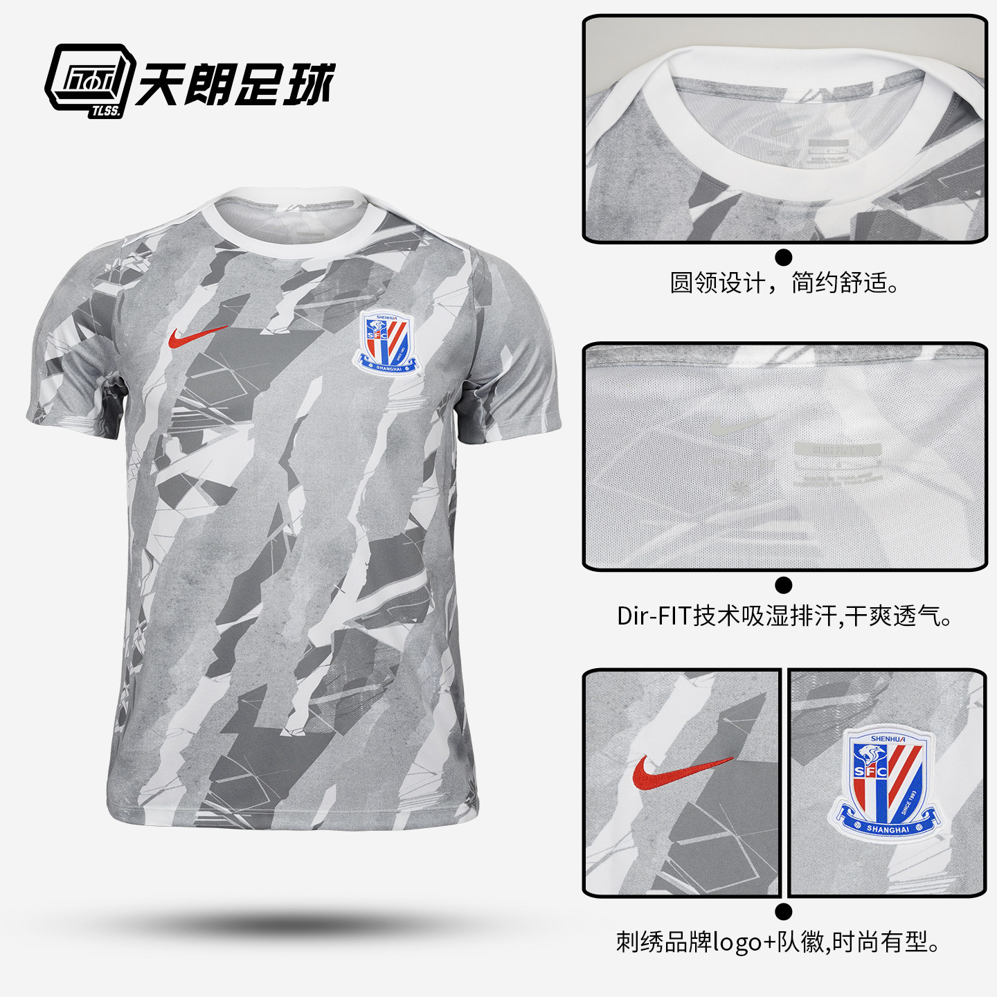 天朗足球耐克中超26申花赛前热身训练服短袖球衣足球服IQ0621-100