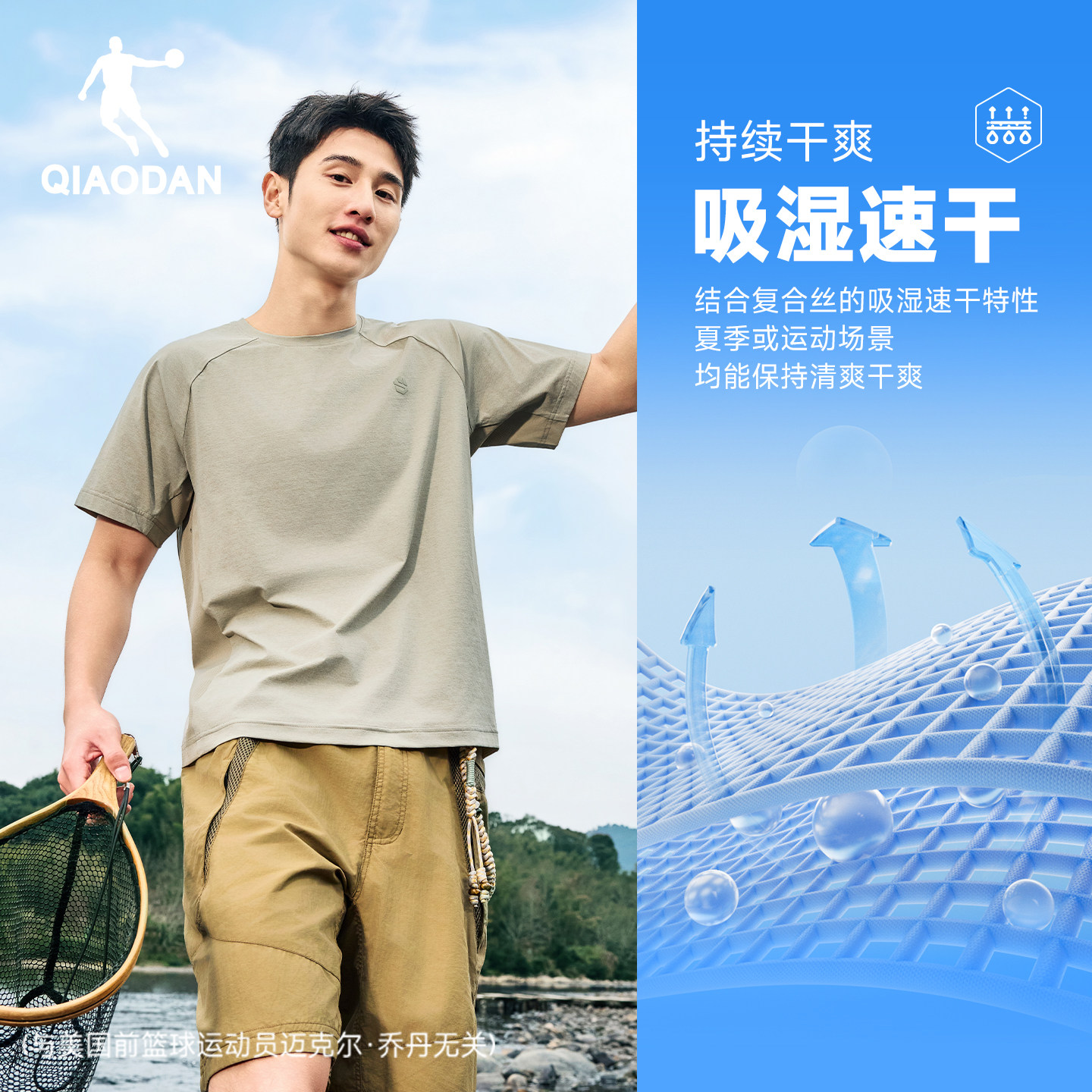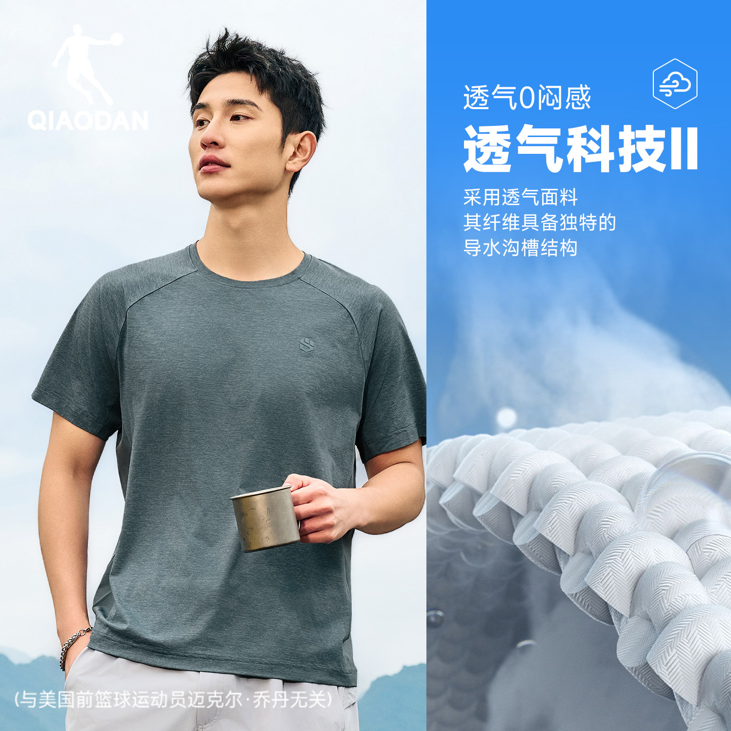 乔丹速干短袖T恤男士2026夏季新款宽松透气运动健身训练运动上衣