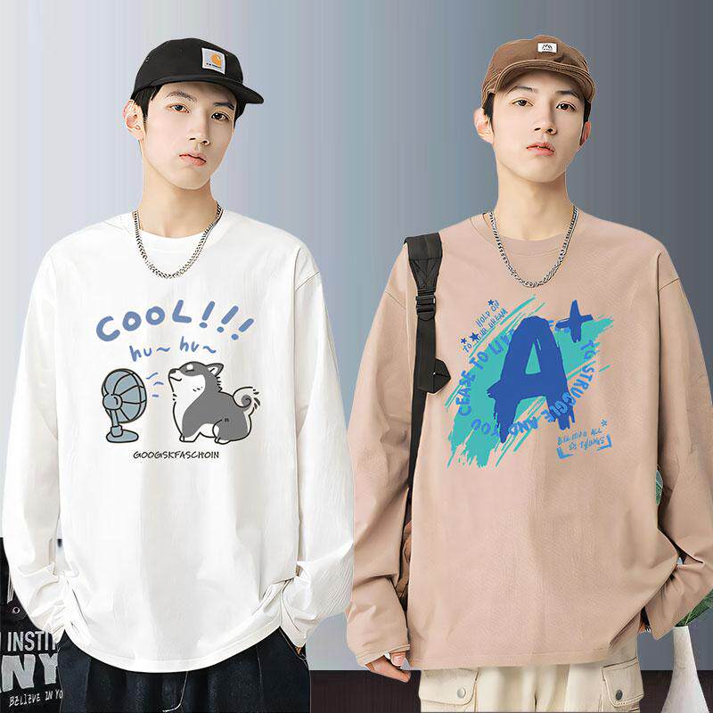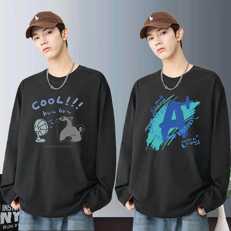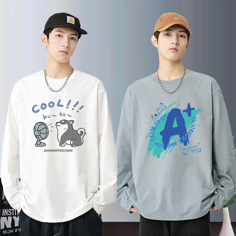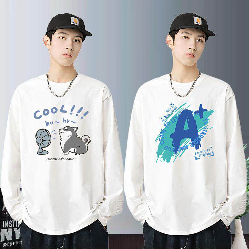 青少年春秋款长袖t恤男孩纯棉初中高中学生大童潮流帅气打底上衣