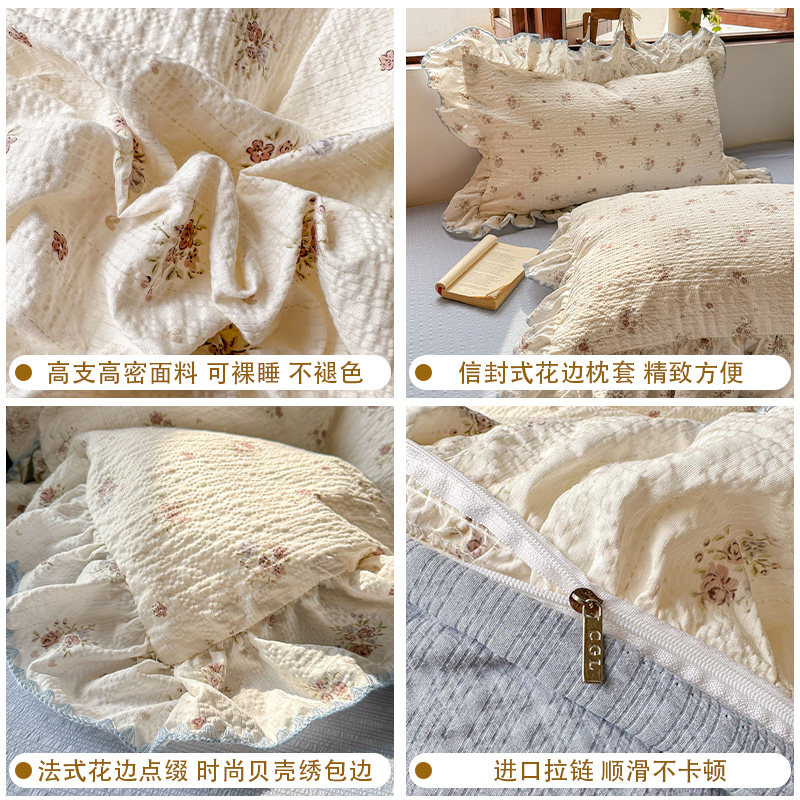 小清新法式花边床上四件套全棉纯棉2026新款床单被套罩宿舍三件套