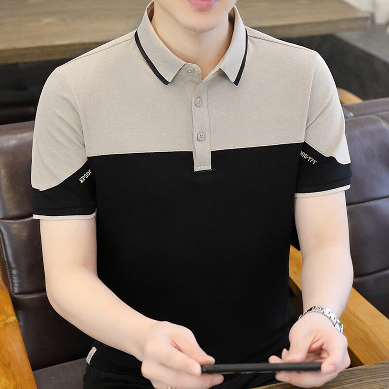 夏季polo衫男款短袖2026年新款拼色潮牌翻领冰丝感衬衫领男士t恤