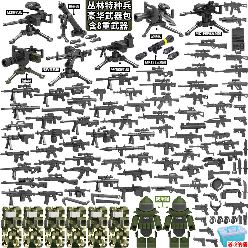 适用乐高人仔武器枪加特林重型火箭筒军事积木特种兵装备拼装玩具