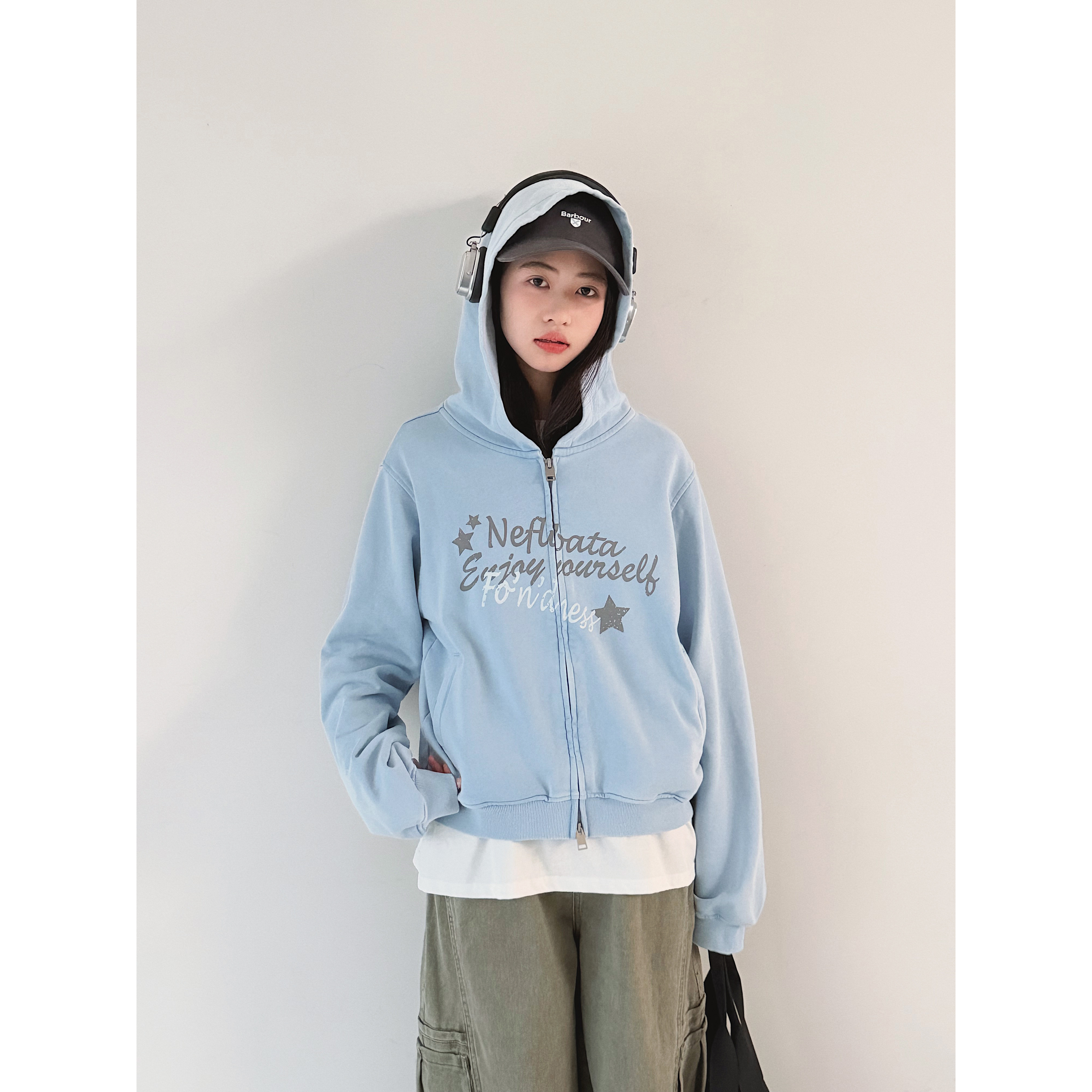 【冰川之星】初中生女外套2026春装新款青少年复古短款连帽拉链衫