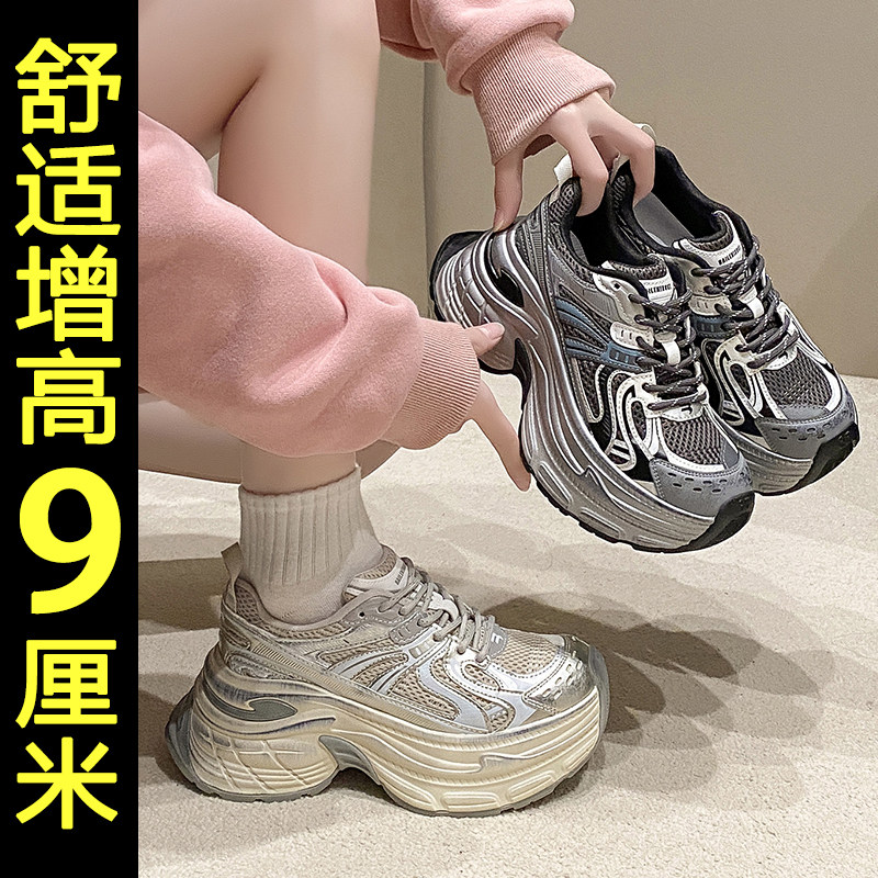 欧货爆款厚底老爹鞋女2026新款春季小个子内增高百搭休闲运动鞋