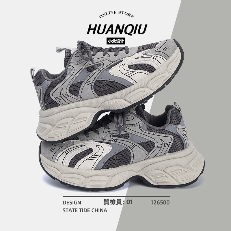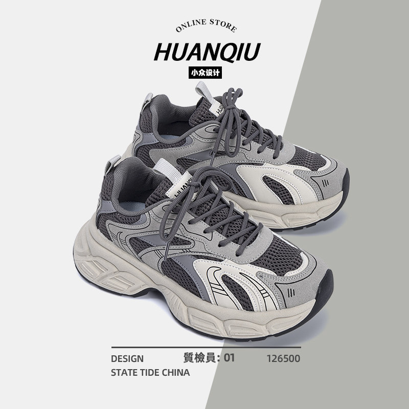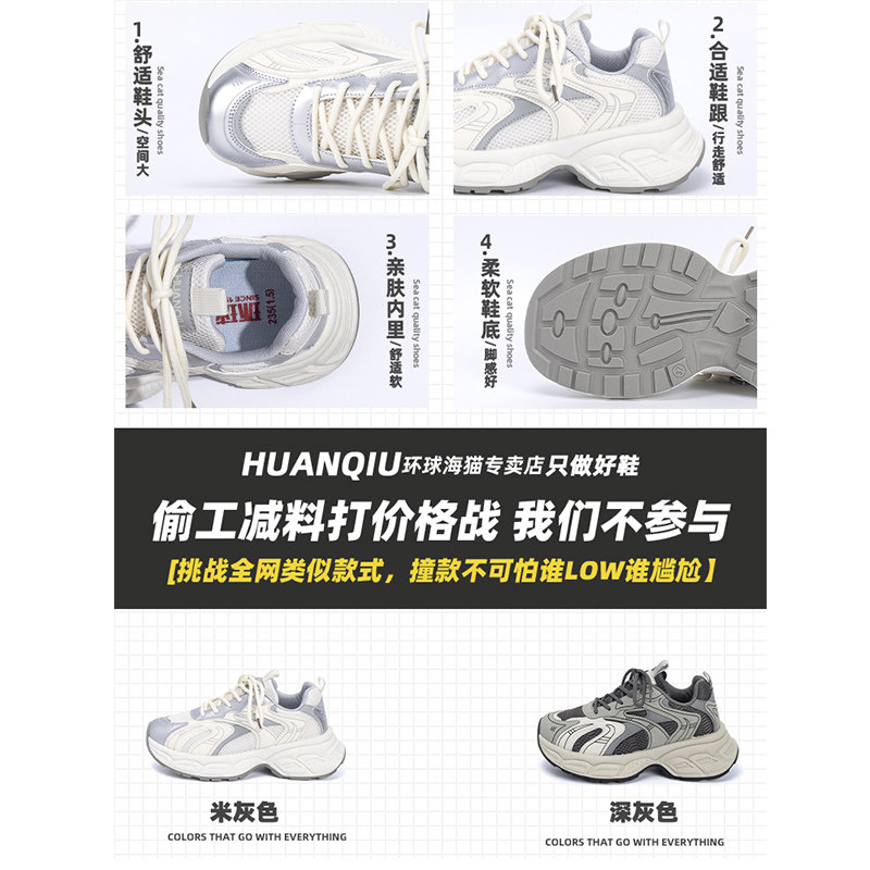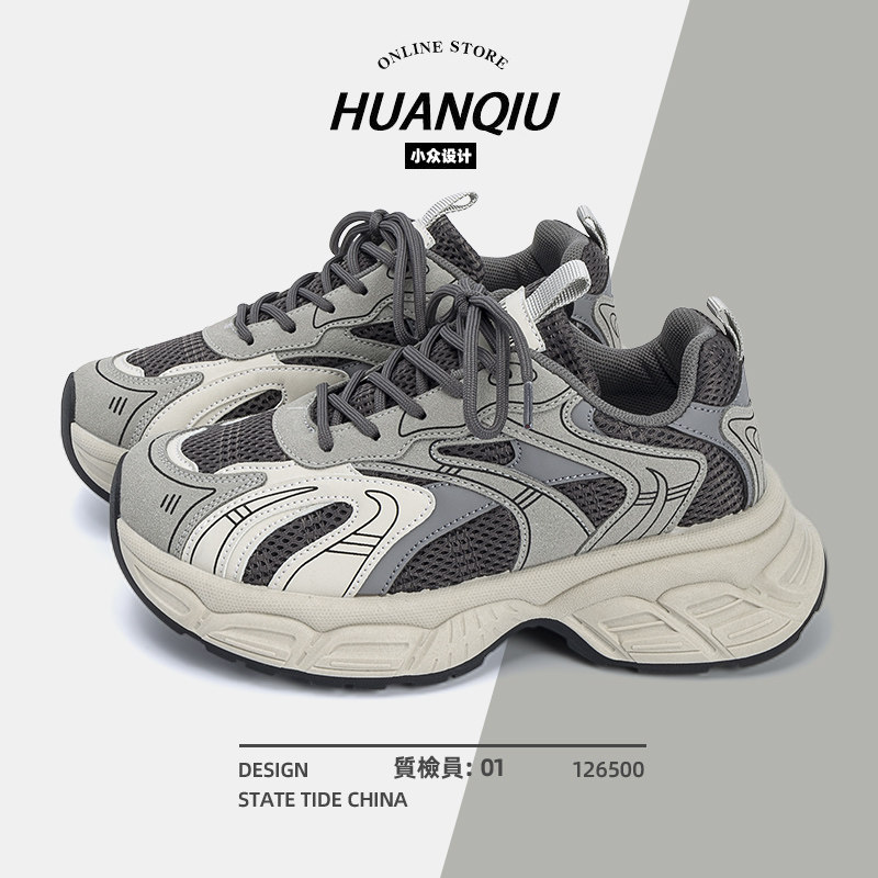 环球厚底老爹鞋女款2025新款夏季透气网面运动鞋百搭休闲增高鞋子