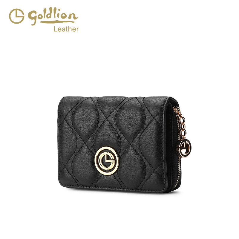 金利来2026年新款零钱包短款女士真皮包一体小卡包黑色百搭钱夹潮