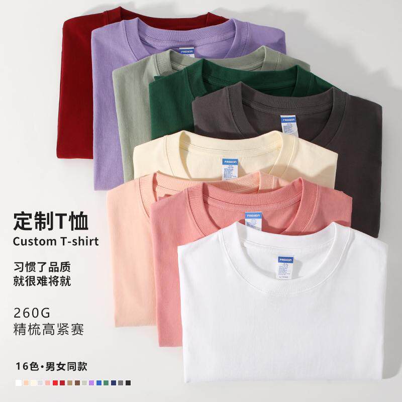 260G精梳纯棉短袖T恤定制印字logo工作服班服公司餐饮团建活动杉