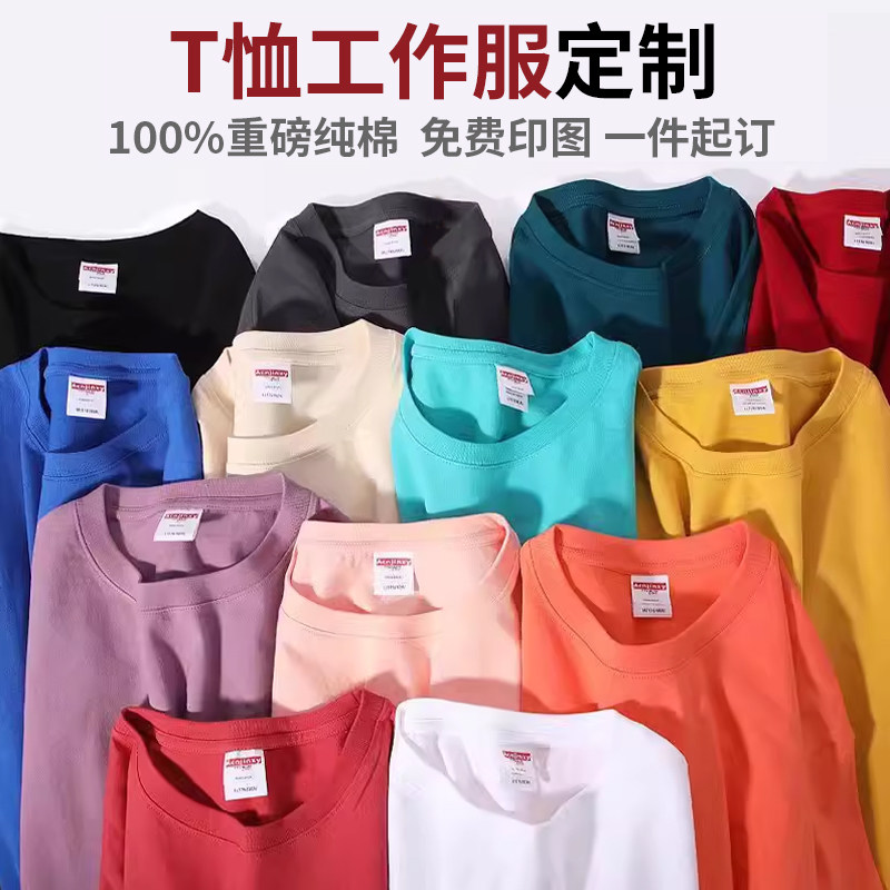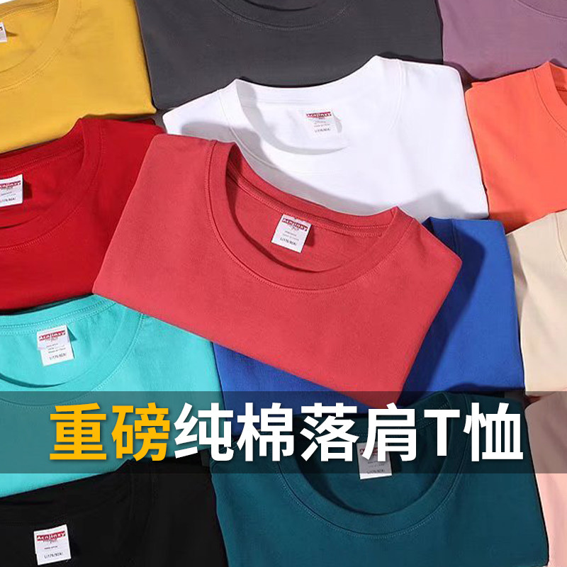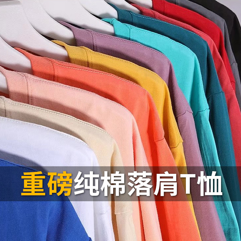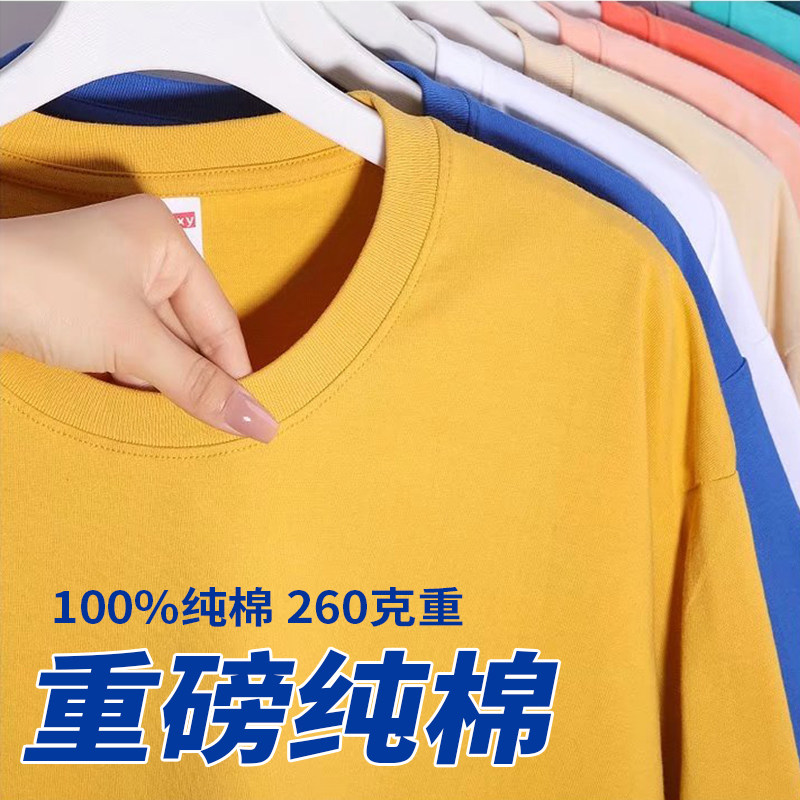 260g美式纯棉落肩宽松t恤定制印logo工作服班服oversize活动服潮