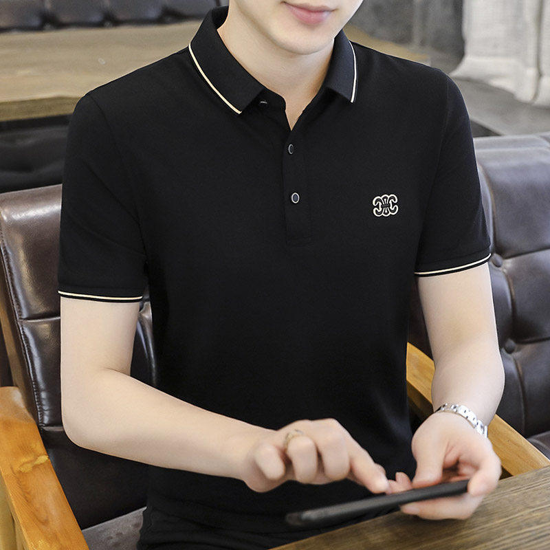 polo衫男短袖珠地棉夏季潮流青年休闲翻领半袖有带领t恤立领上衣