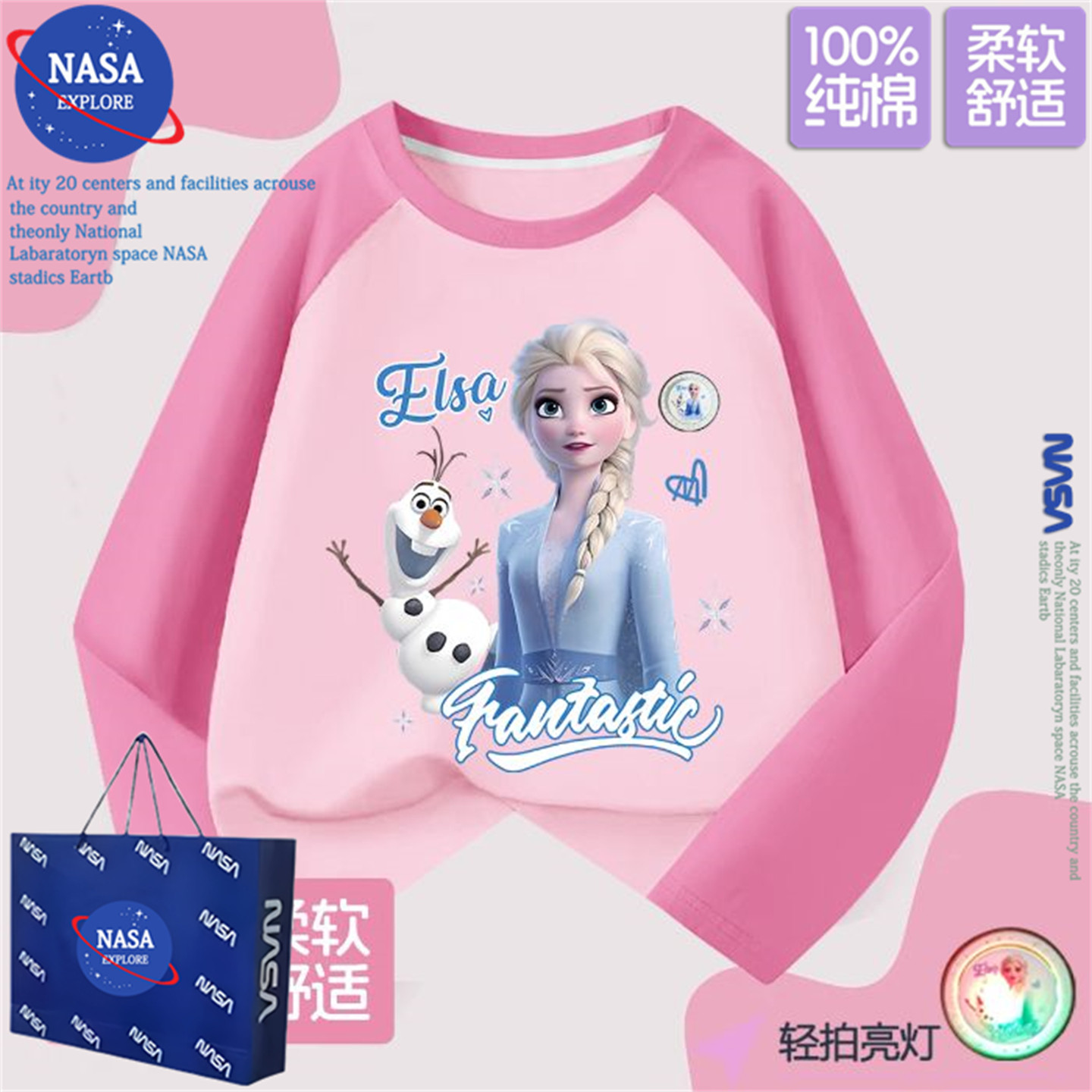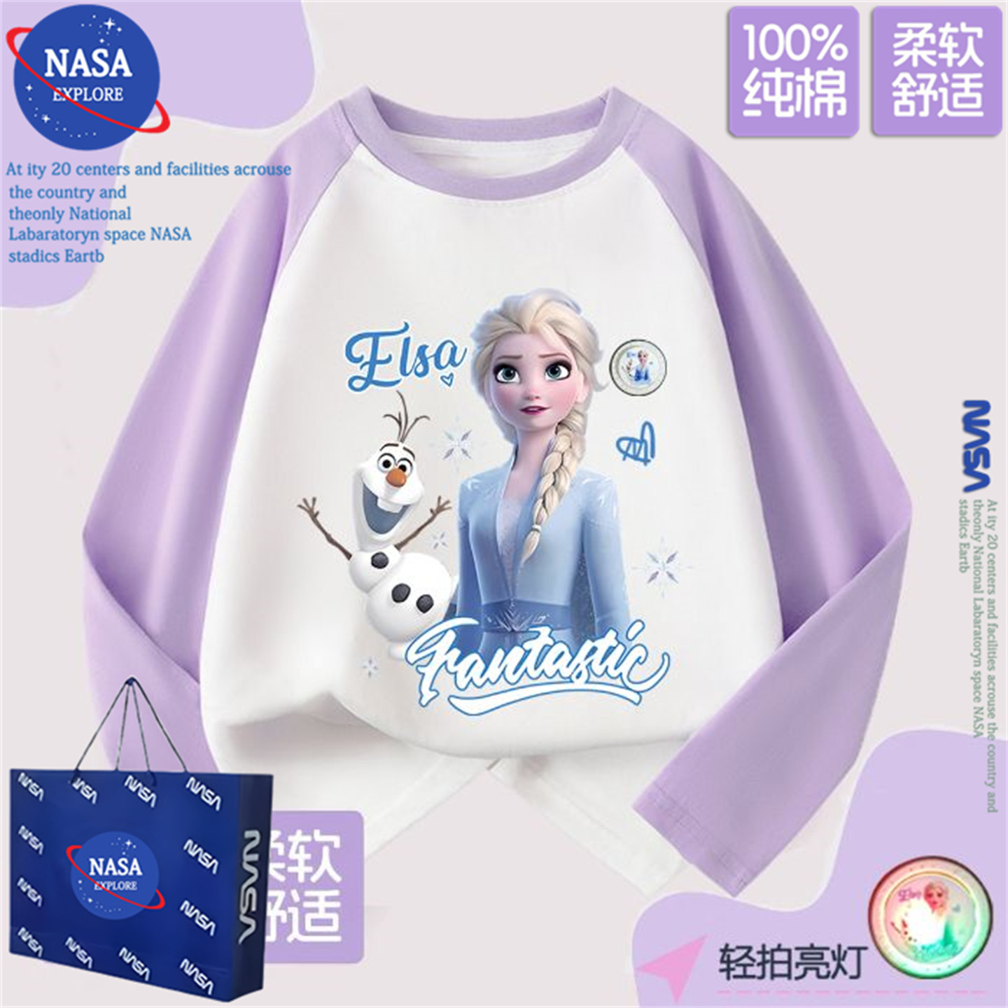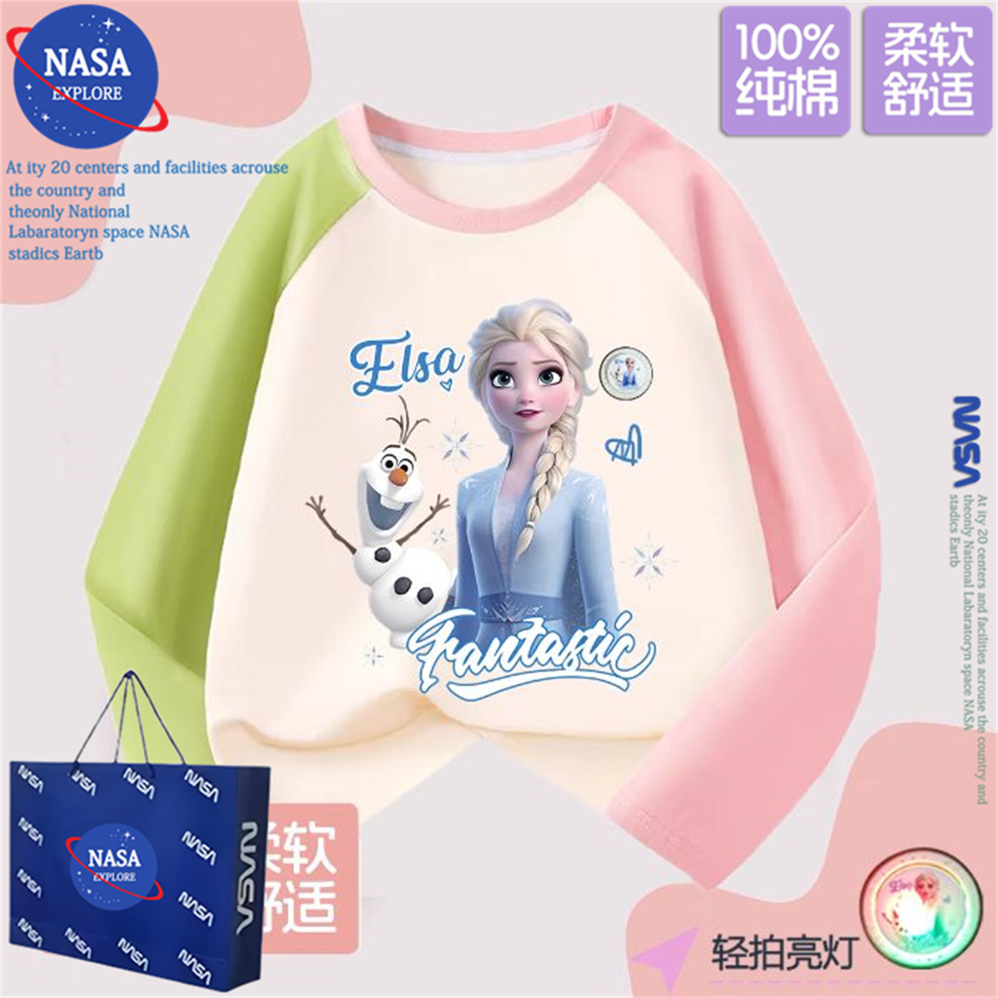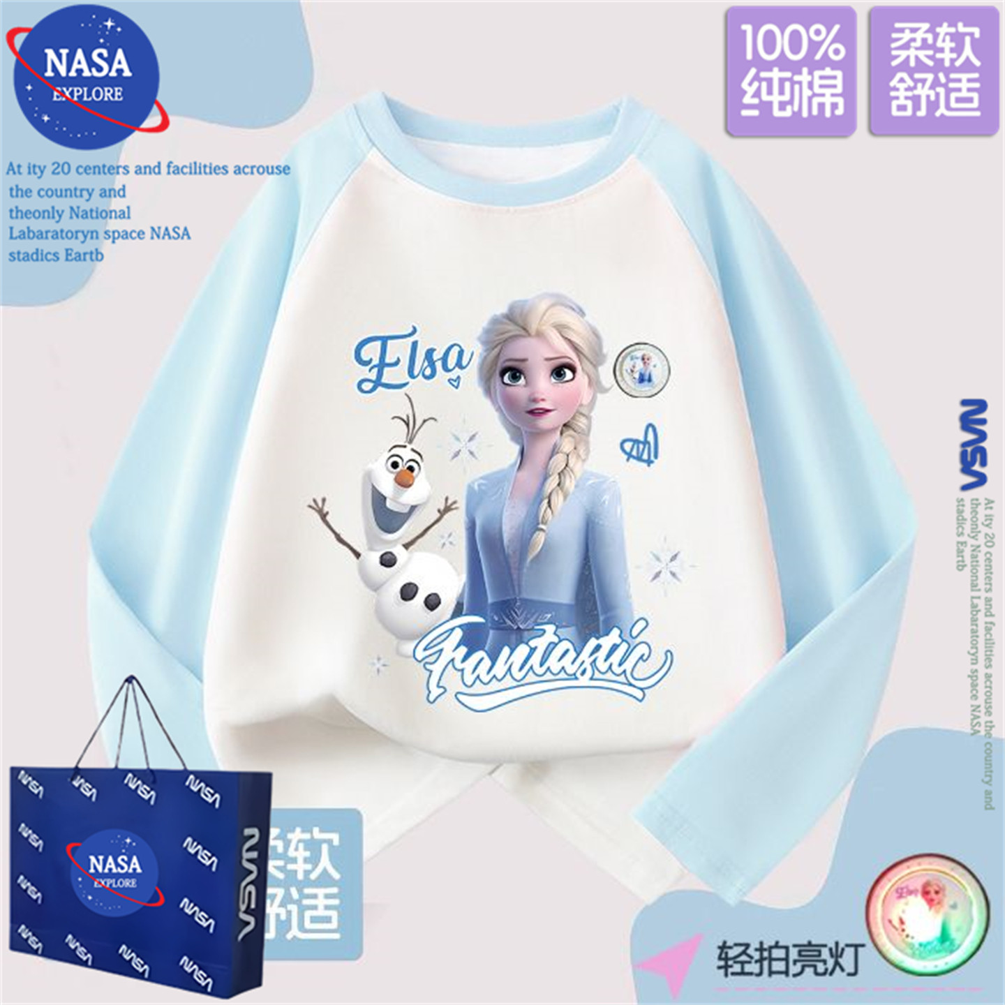 NASA纯棉女童长袖T恤春秋新款洋气爱莎公主亮灯儿童装薄款上衣服