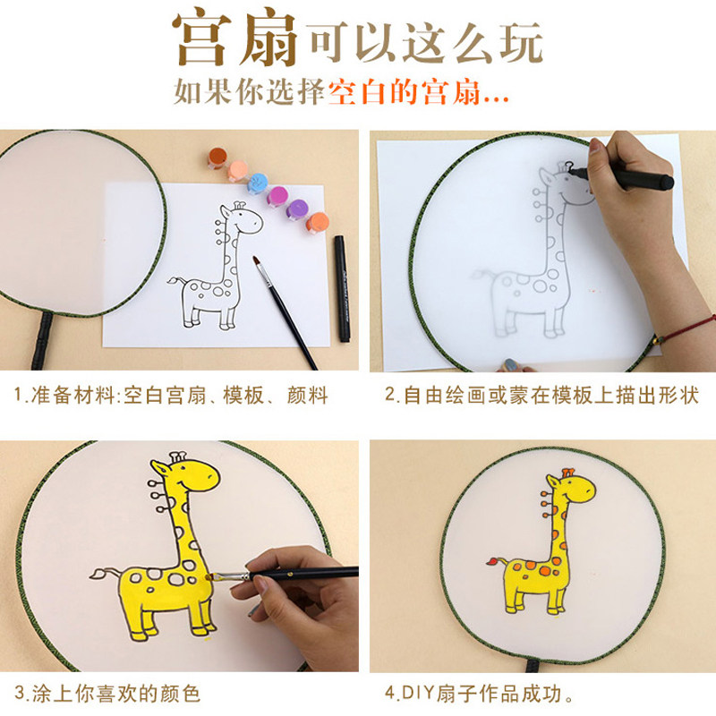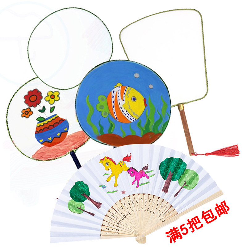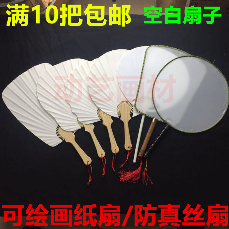 包邮空白防真丝宫廷扇子绘画白色扇面空白团扇圆扇空白美术绘画扇