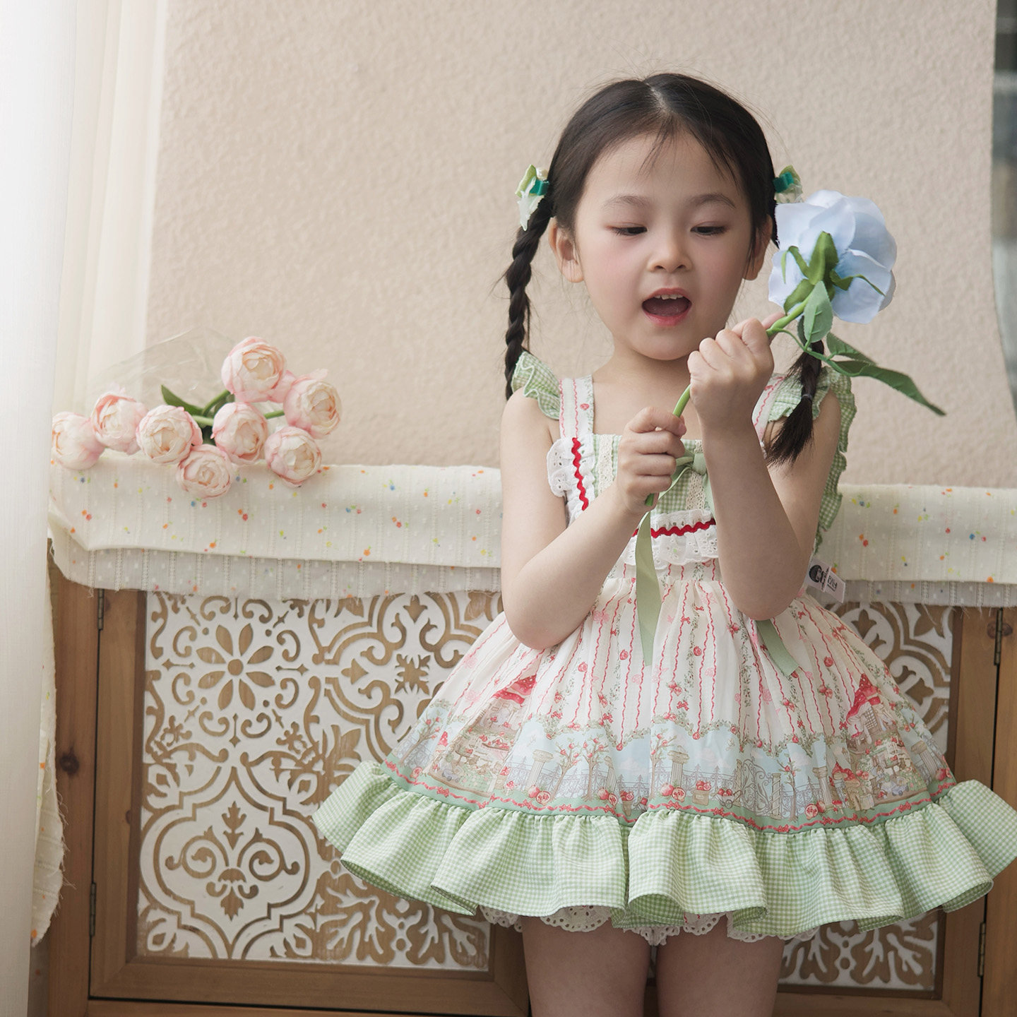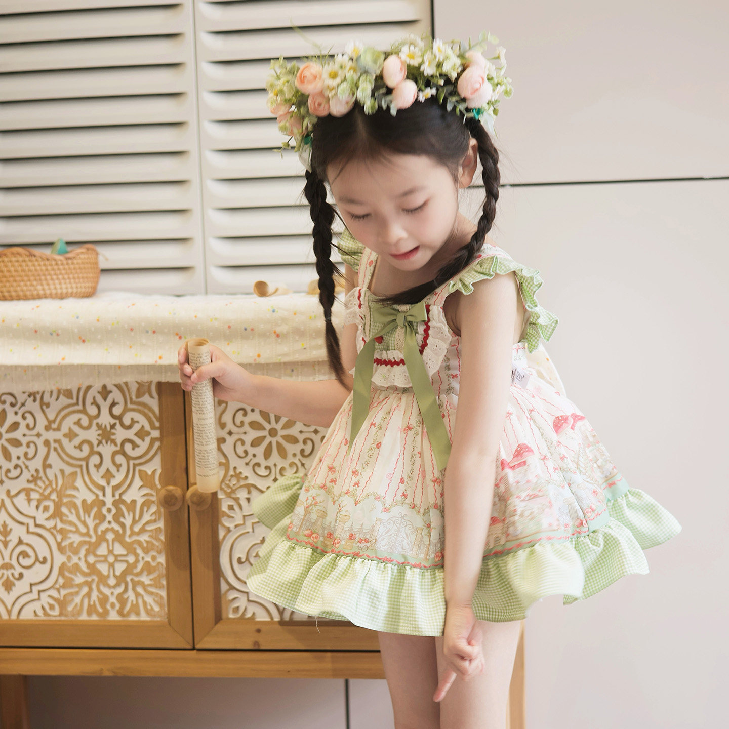 粗腿原创蘑菇女童连衣裙2026夏季新款背心裙套装洋气休闲儿童穿搭